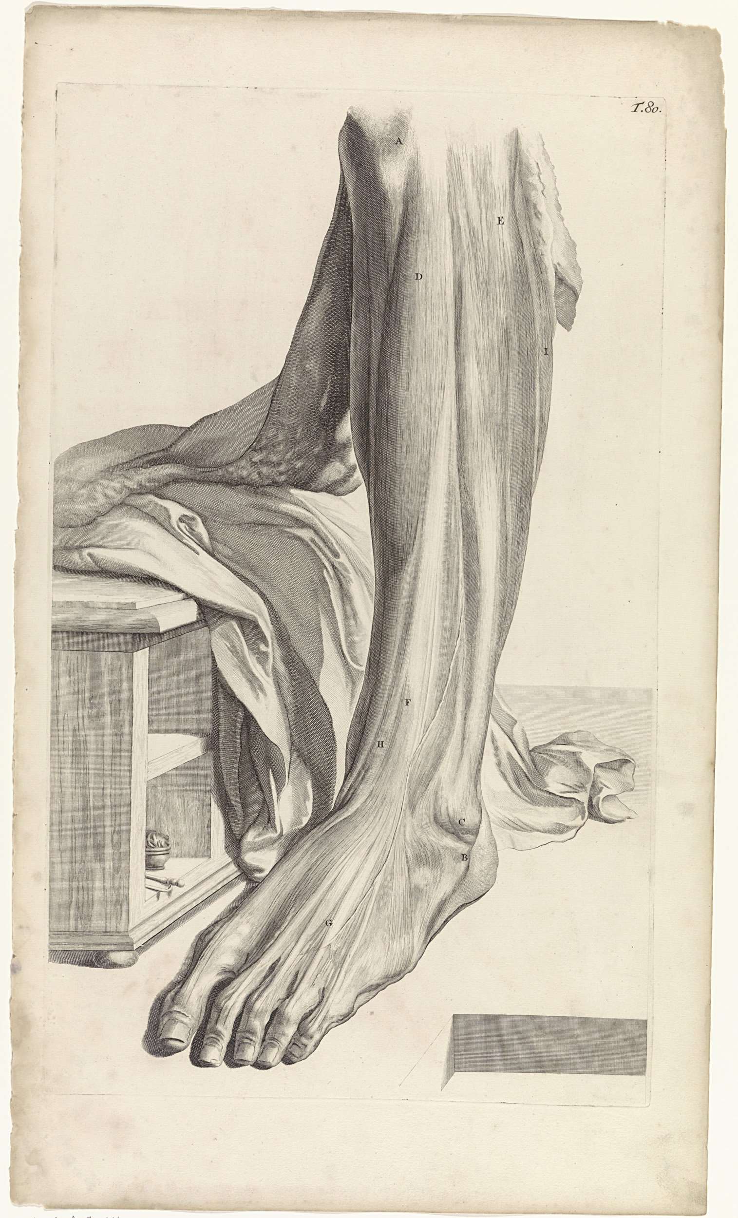 Anatomische studie van de rechtervoet. Bovenaan rechts genummerd T. 80.