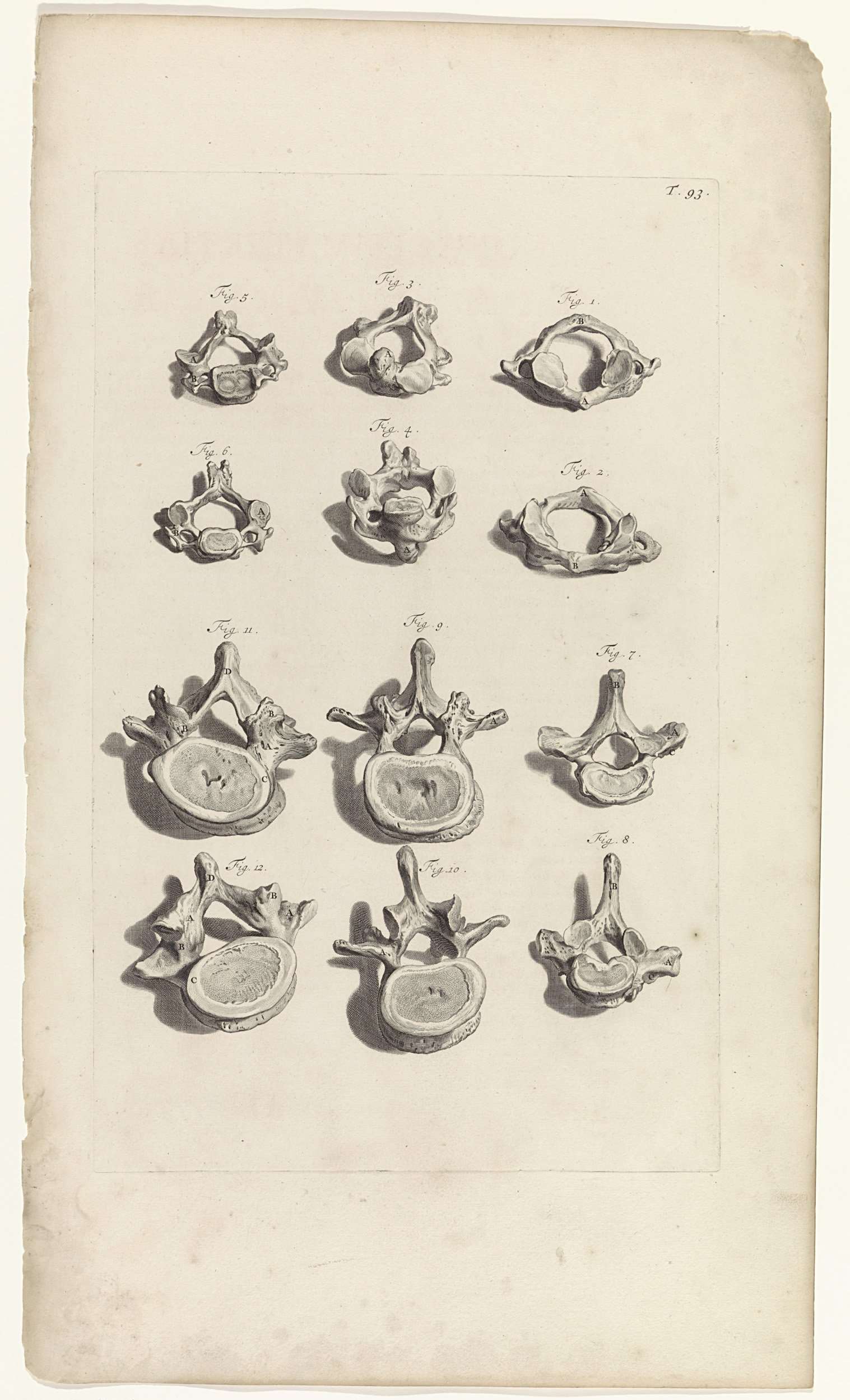 Anatomische studie van de ruggenwervels. Bovenaan rechts genummerd T. 93.