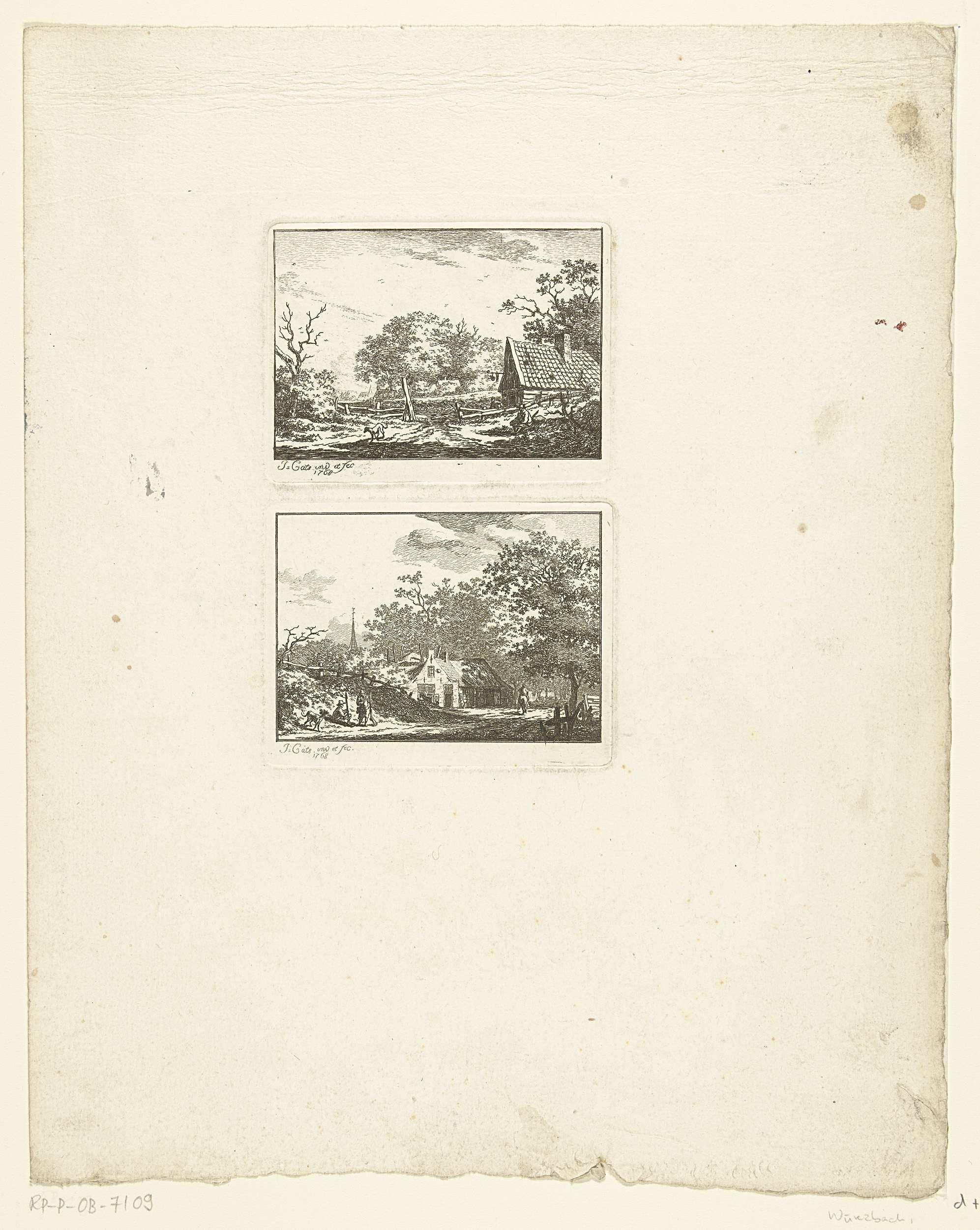 Landschap met man en hond en landschap met twee jagers langs de weg