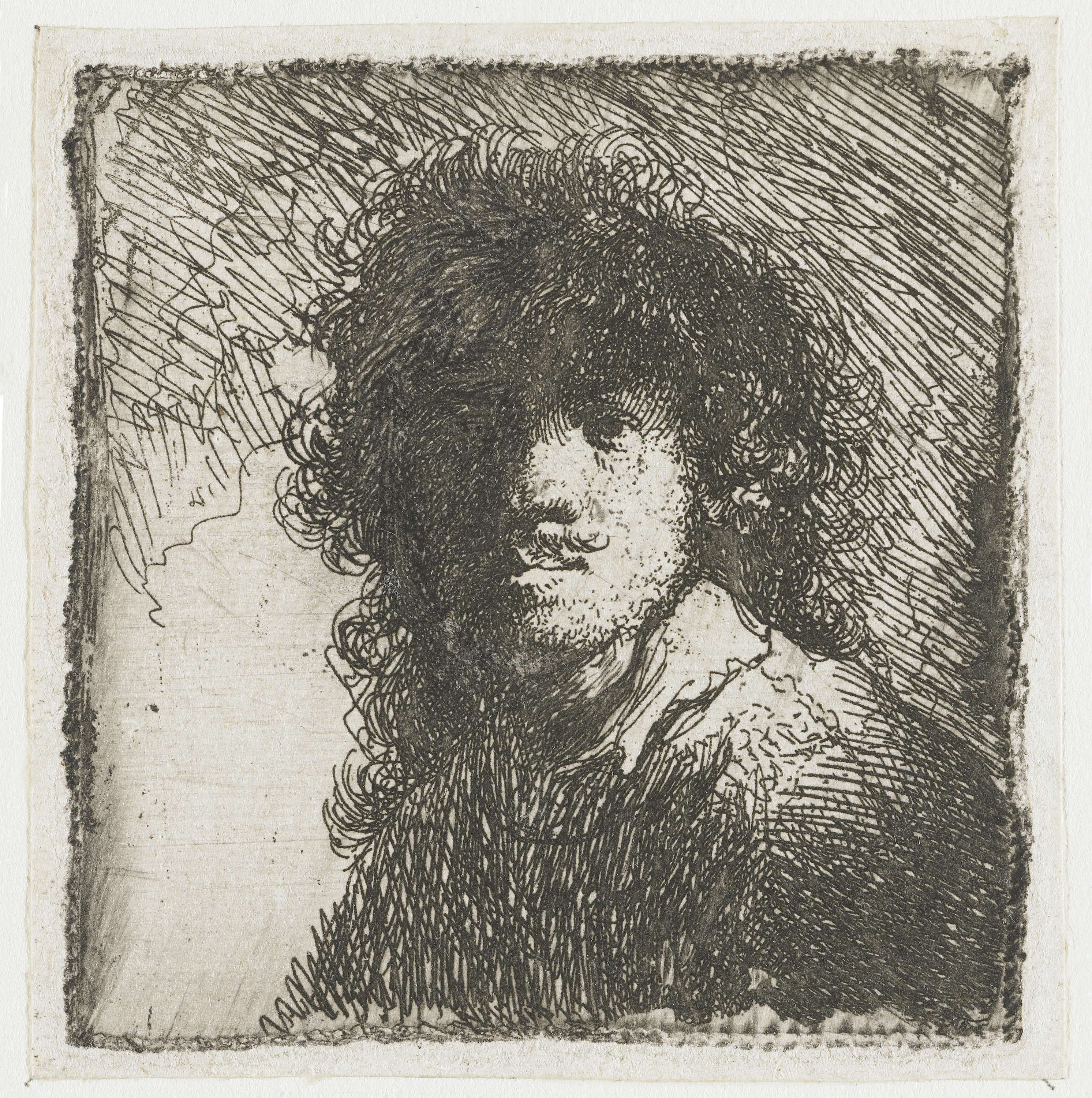Nadat hij rond 1628 een hoogst ongewoon zelfportret had geschilderd met zijn gezicht in de schaduw (elders in deze zaal), probeerde Rembrandt dezelfde aanpak in zijn etsen. Dat bleek nog niet zo makkelijk. Aanvankelijk slaagde hij er niet in de details in de schaduw herkenbaar te houden. Pas bij een nieuwe poging in 1633 (midden), ...