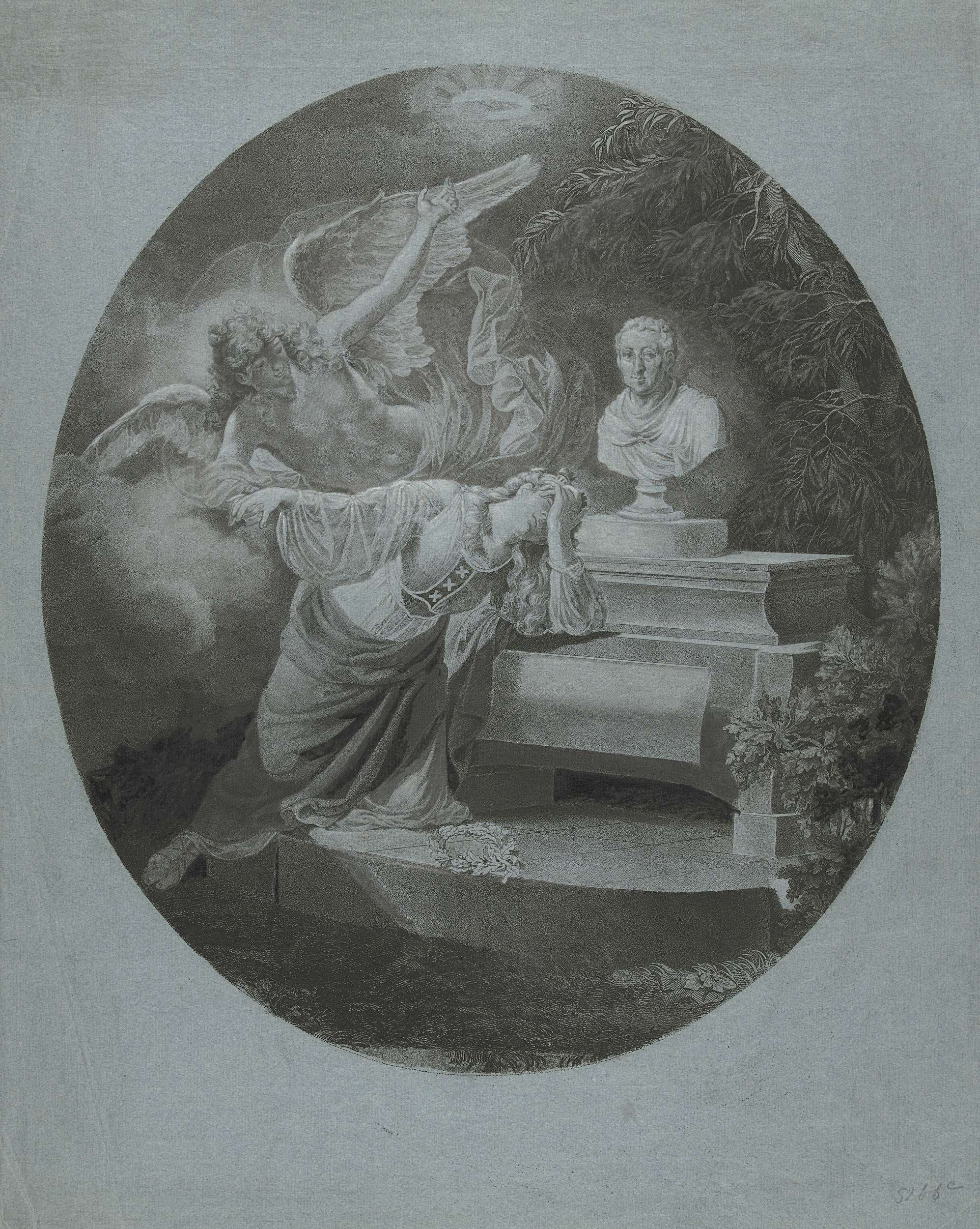 De Amsterdamse stedenmaagd rouwt bij het graf van de Amsterdamse burgermeester Hendrik Hooft Daniëlsz. Een engel steunt haar in het verdriet en wijst haar op de onsterfelijkheid van de overledene. Op de graftombe staat een portretbuste van Hooft Daniëlsz. in antieke stijl.