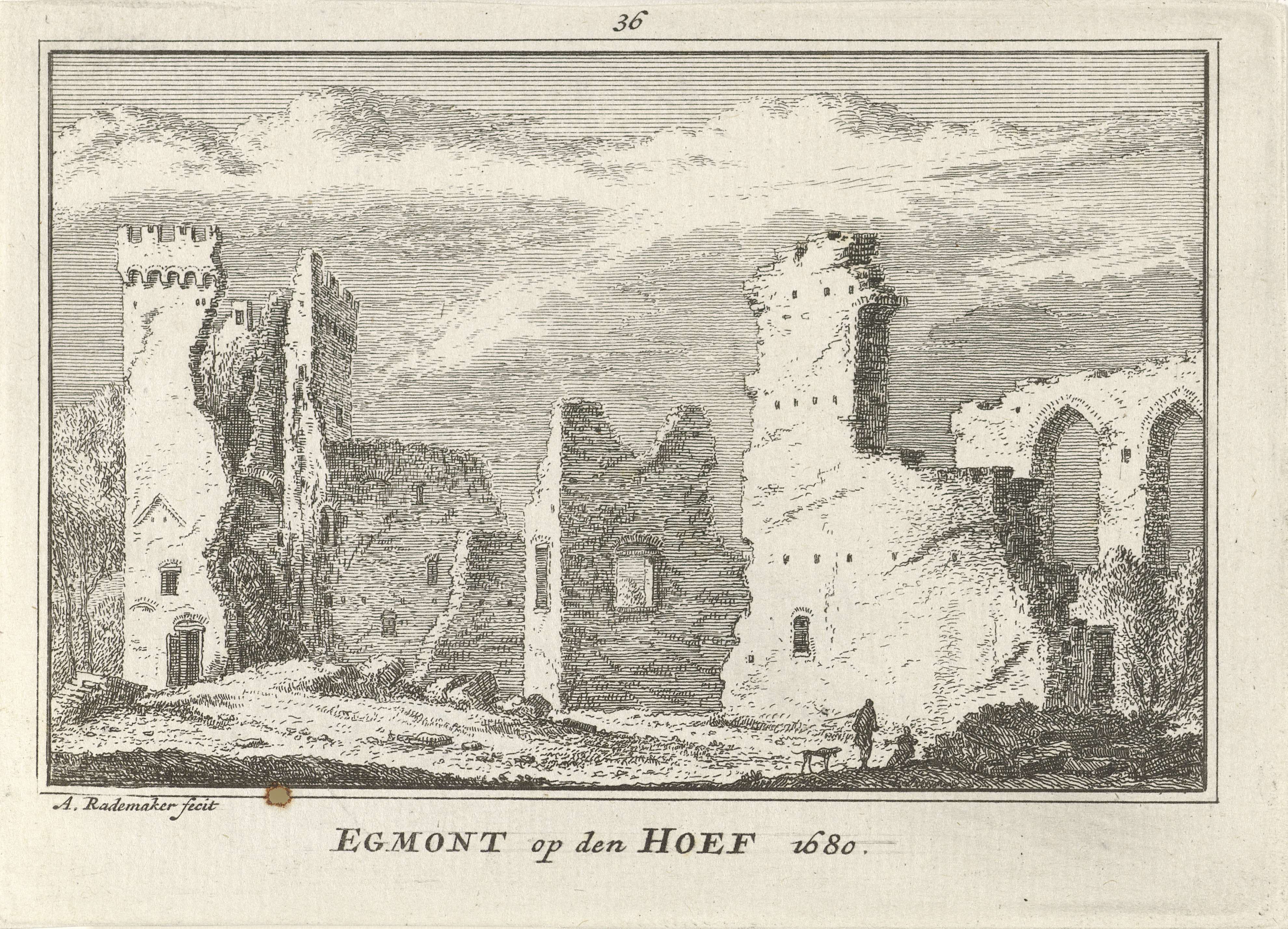 Gezicht op een deel van de ruïne van Kasteel Egmond, 1680
