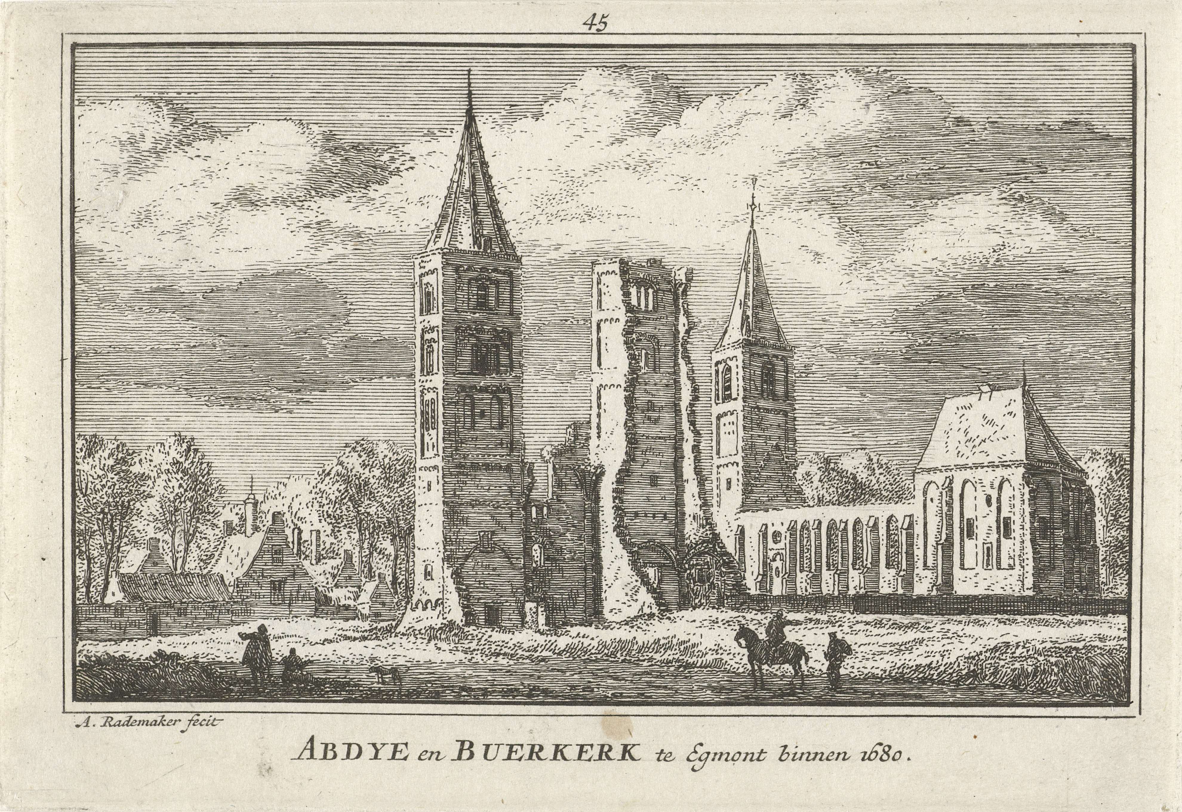Gezicht op de abdij en de Buurkerk te Egmond-Binnen, 1680