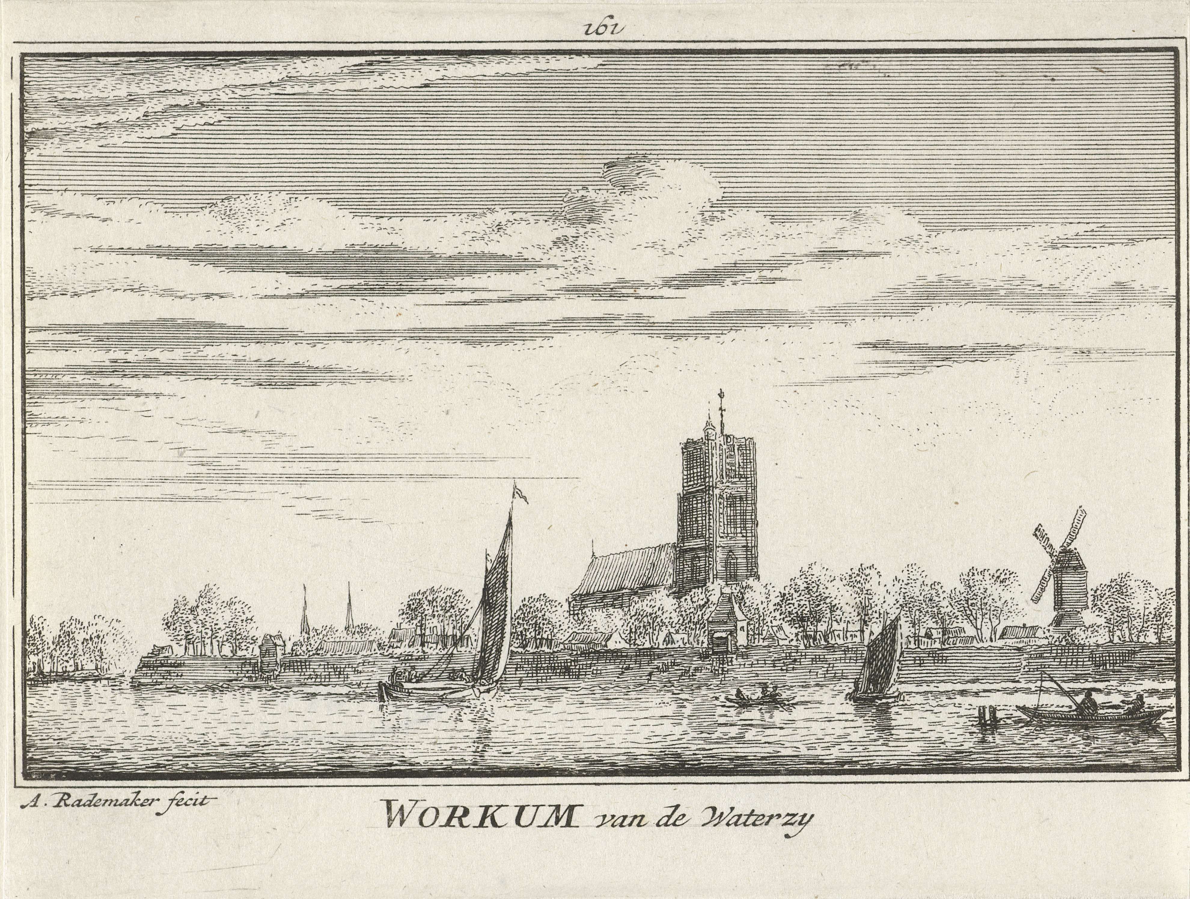 Gezicht op Woudrichem, gezien vanaf de Merwede. In het midden de Sint-Martinuskerk.