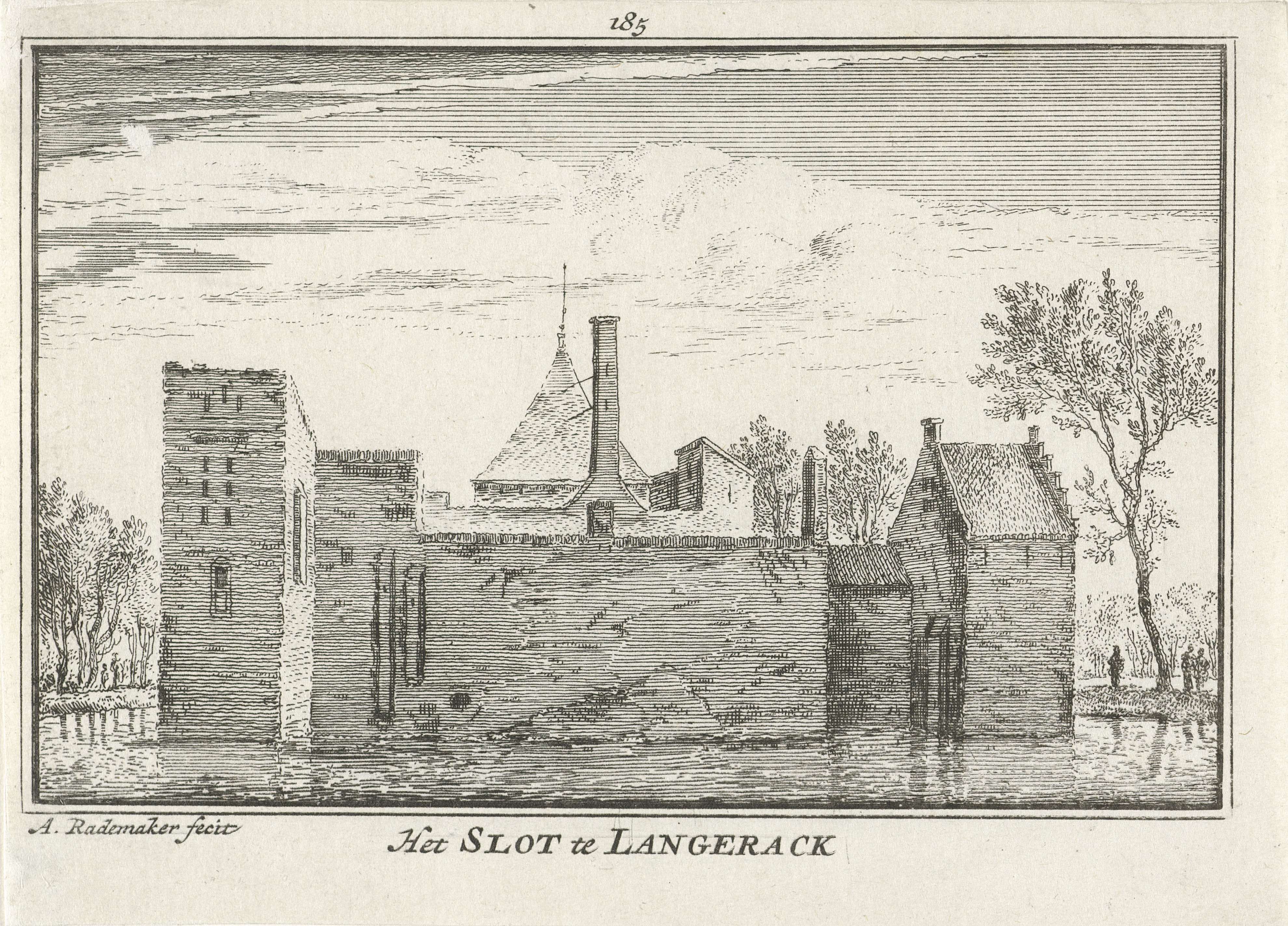 Gezicht op de achterzijde van Kasteel Langerak, gelegen aan de rivier de Lek.