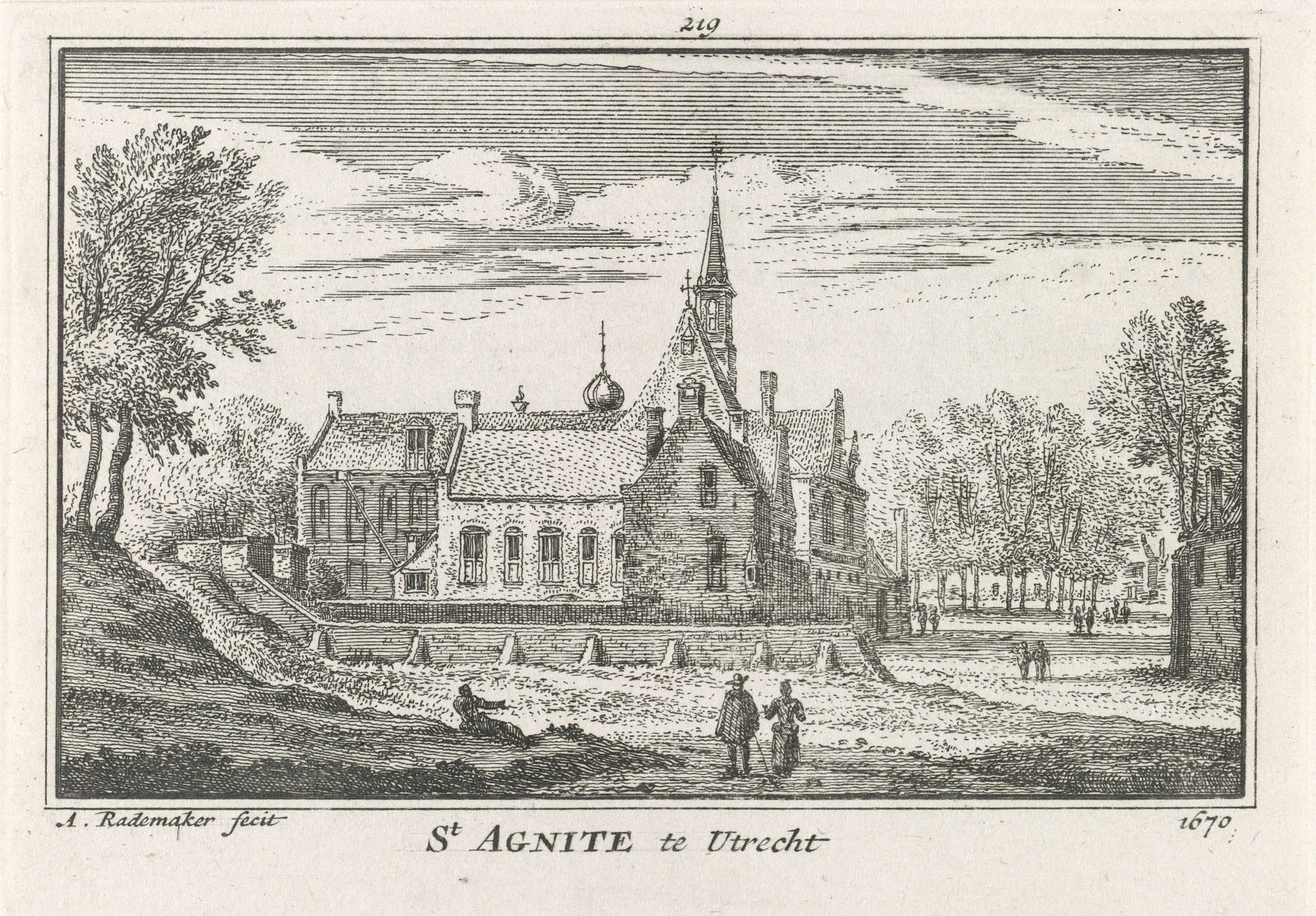 Gezicht op het St.-Agnietenklooster te Utrecht, 1670