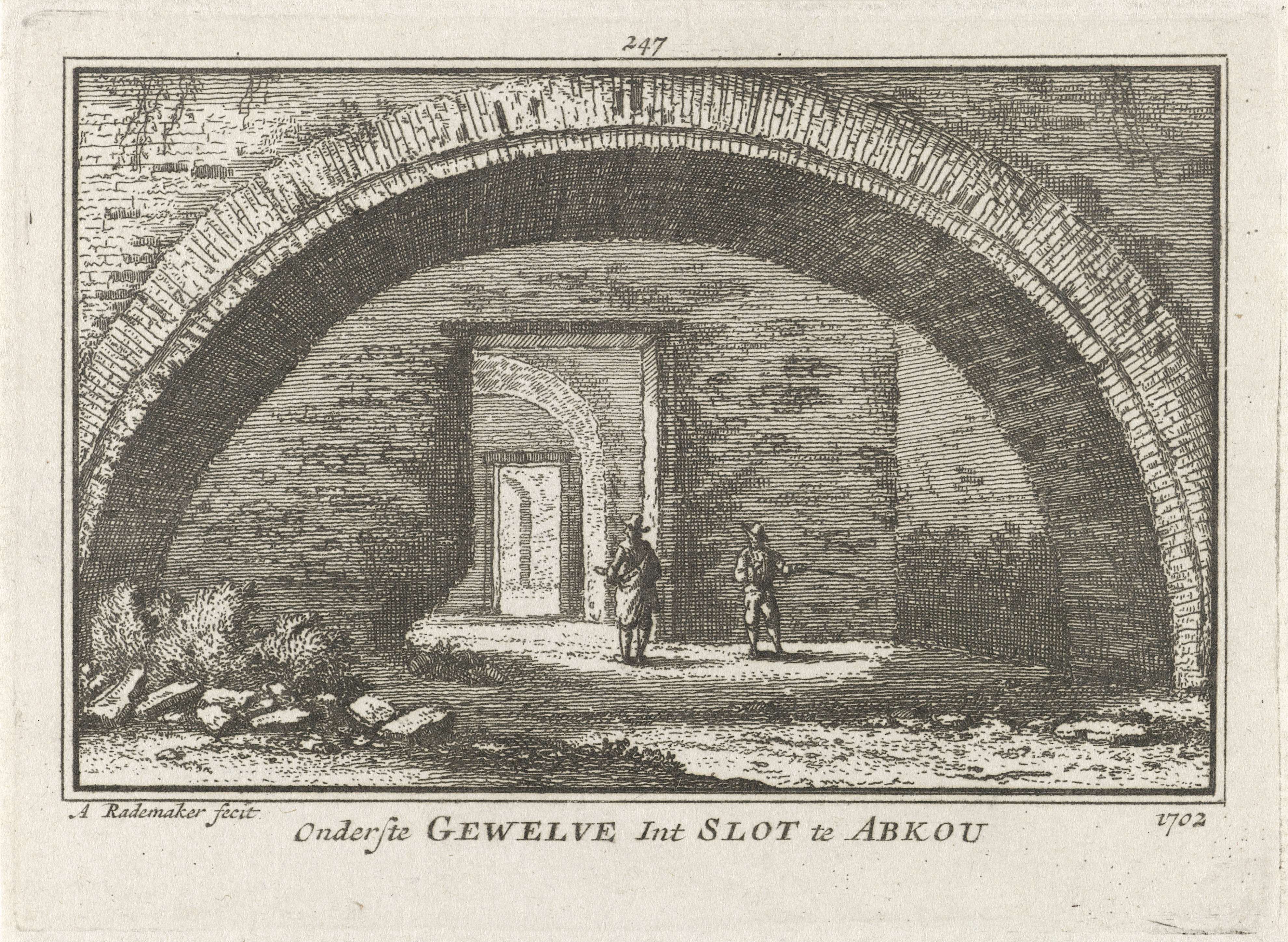 Gezicht op een gewelf in de ruïne van Slot Abcoude, in de situatie omstreeks 1702.