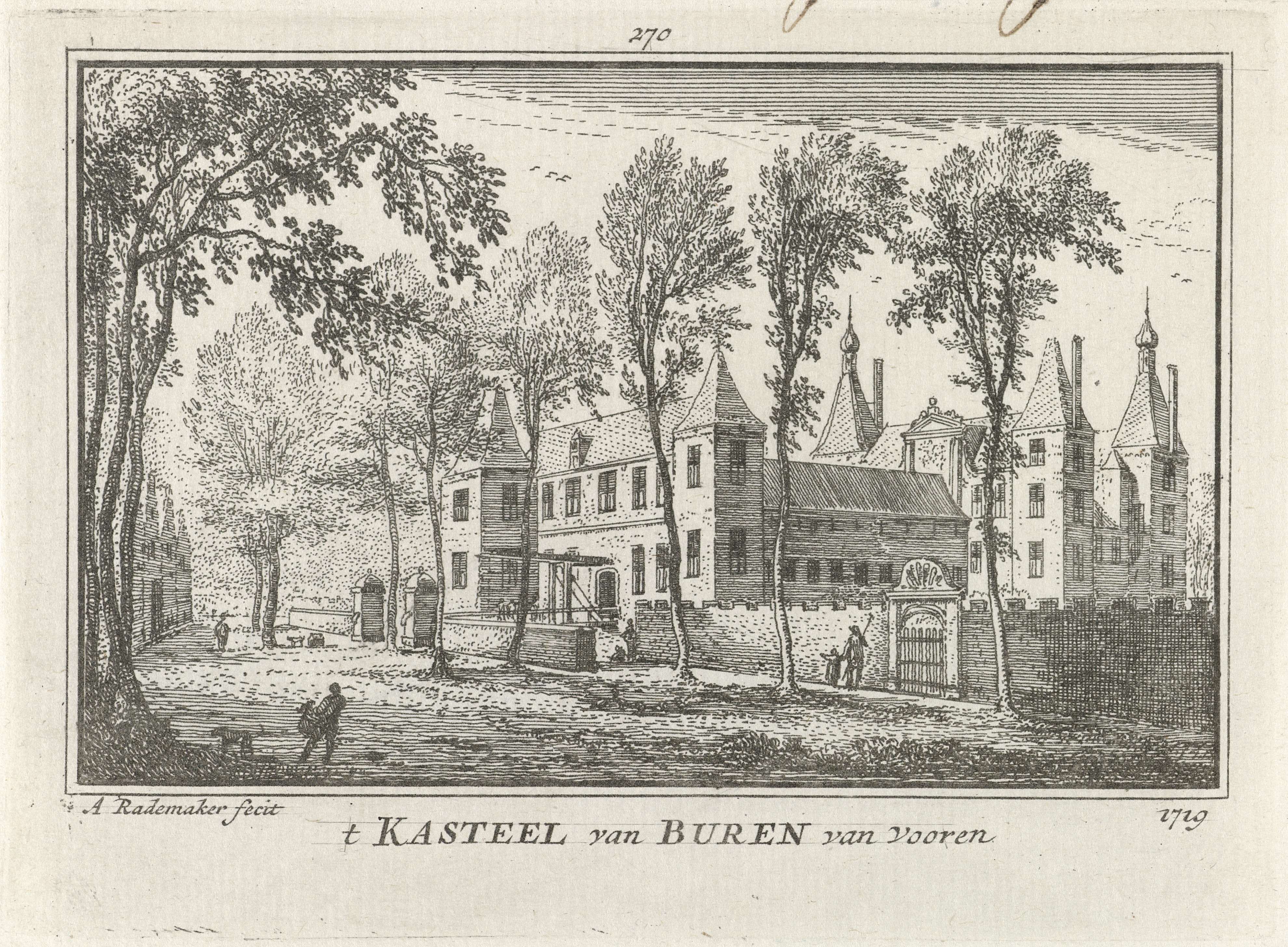 Gezicht op de voorzijde van Kasteel Buren in de situatie omstreeks 1719.