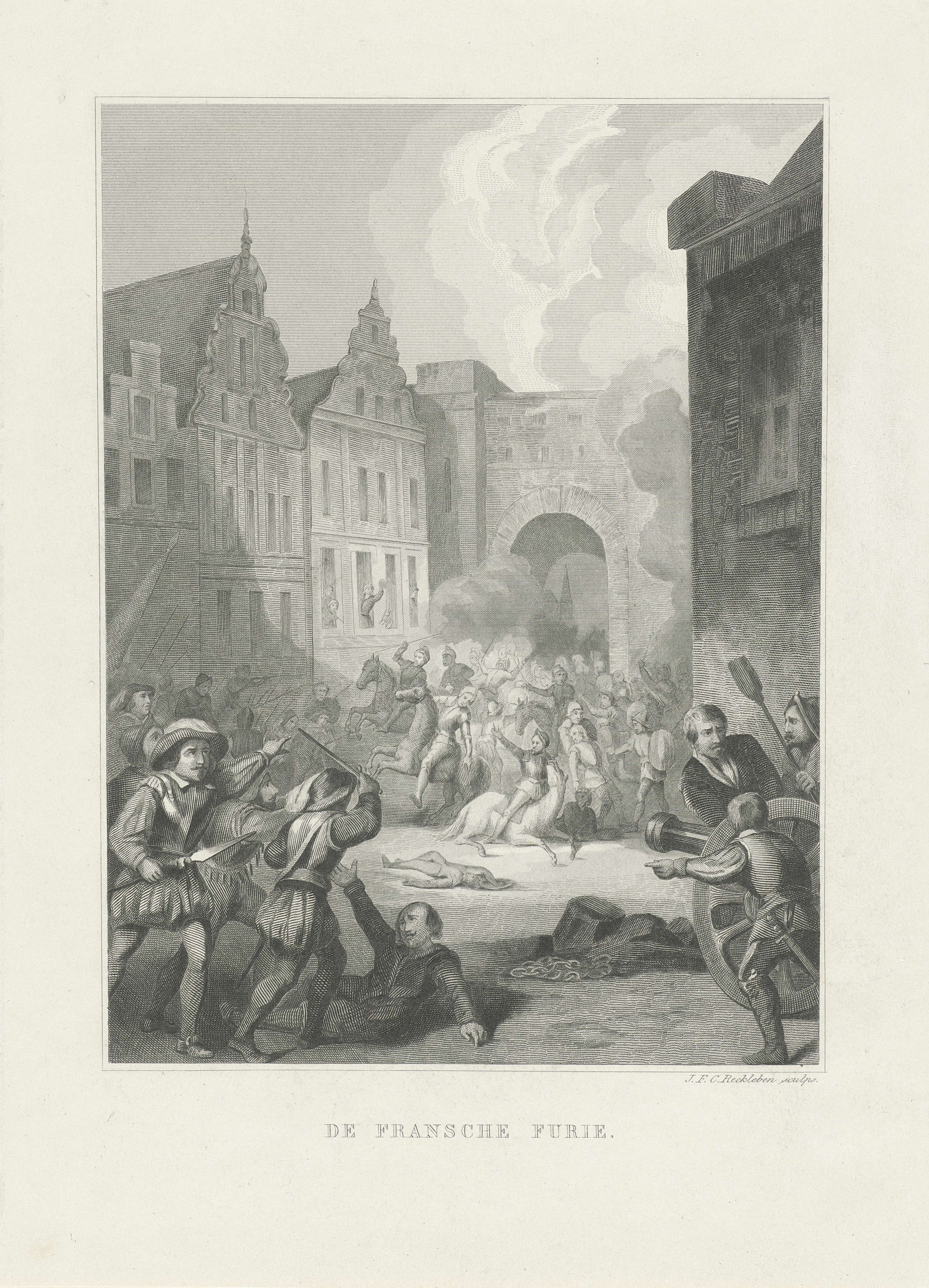 De Franse Furie te Antwerpen, 17 januari 1583. Gevechten tussen plunderende Franse soldaten van de hertog van Anjou en de burgers van Antwerpen.