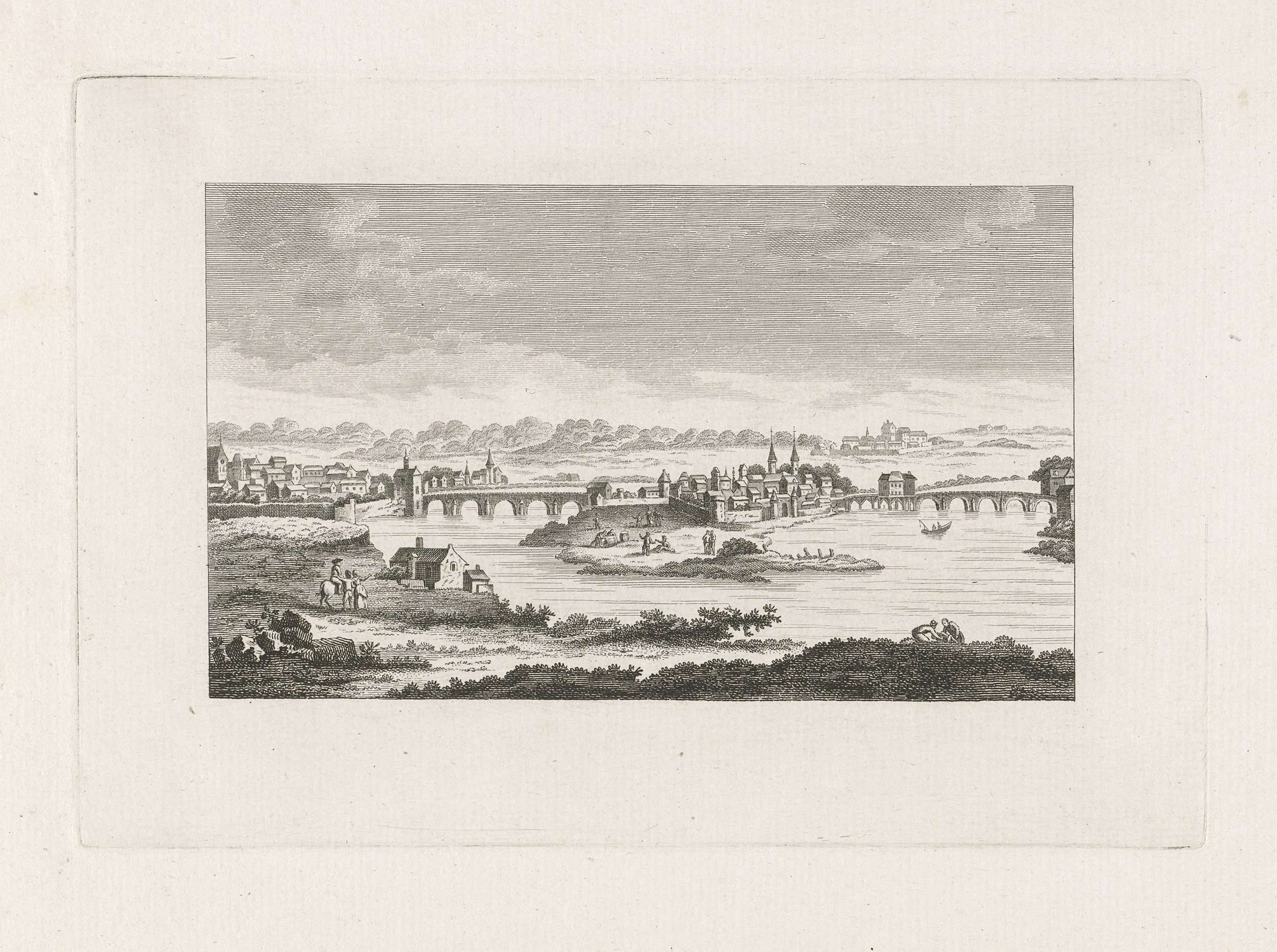 Gezicht vanaf een heuvel op de Franse stad Melun, gelegen op een eiland en omgeven door de rivier de Seine.