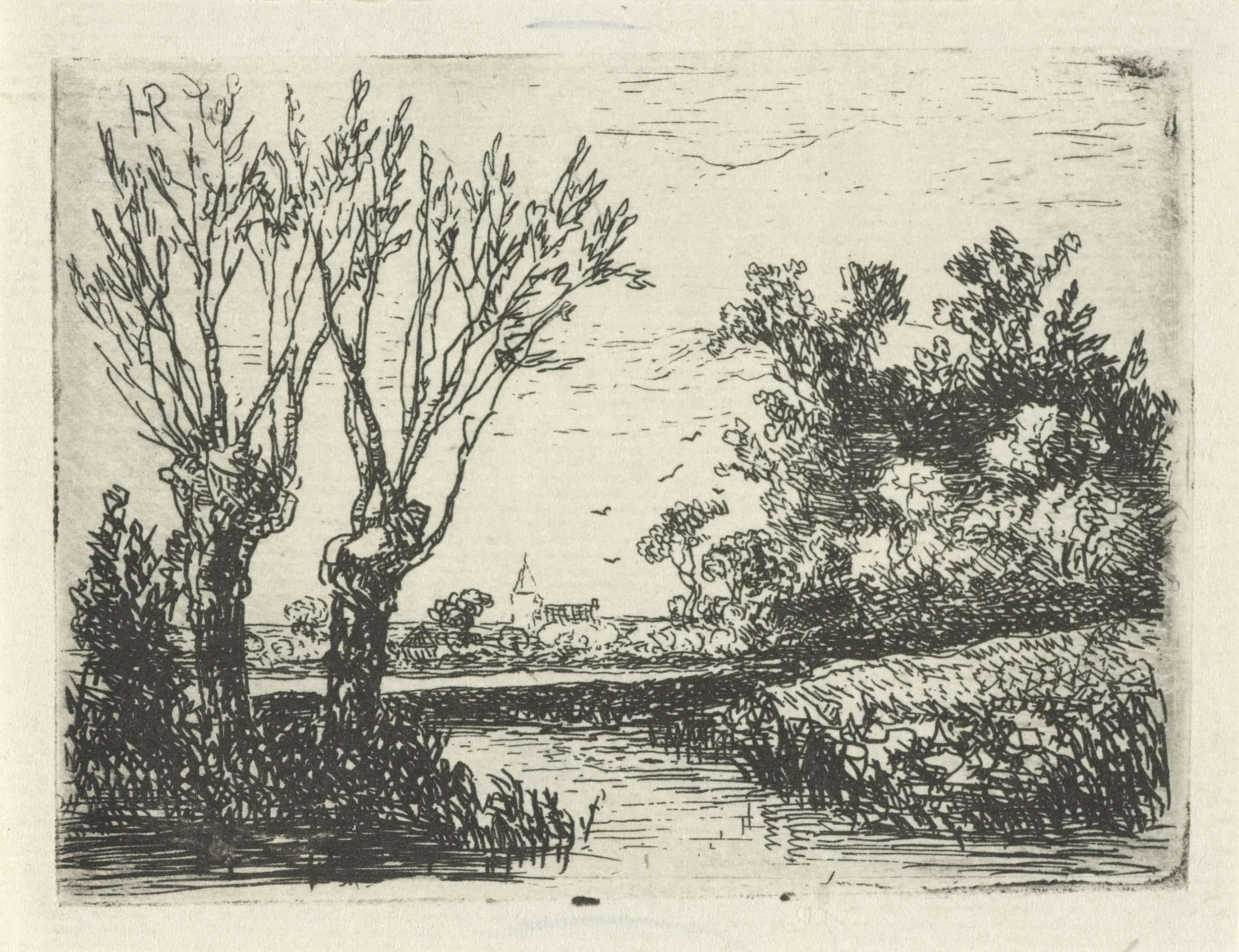 Landschap met twee knotwilgen