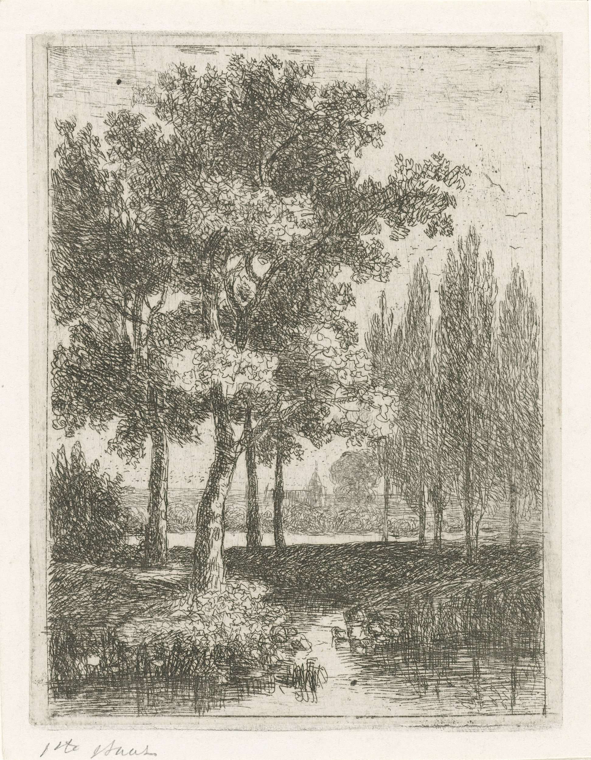 Landschap met een beekje en populieren