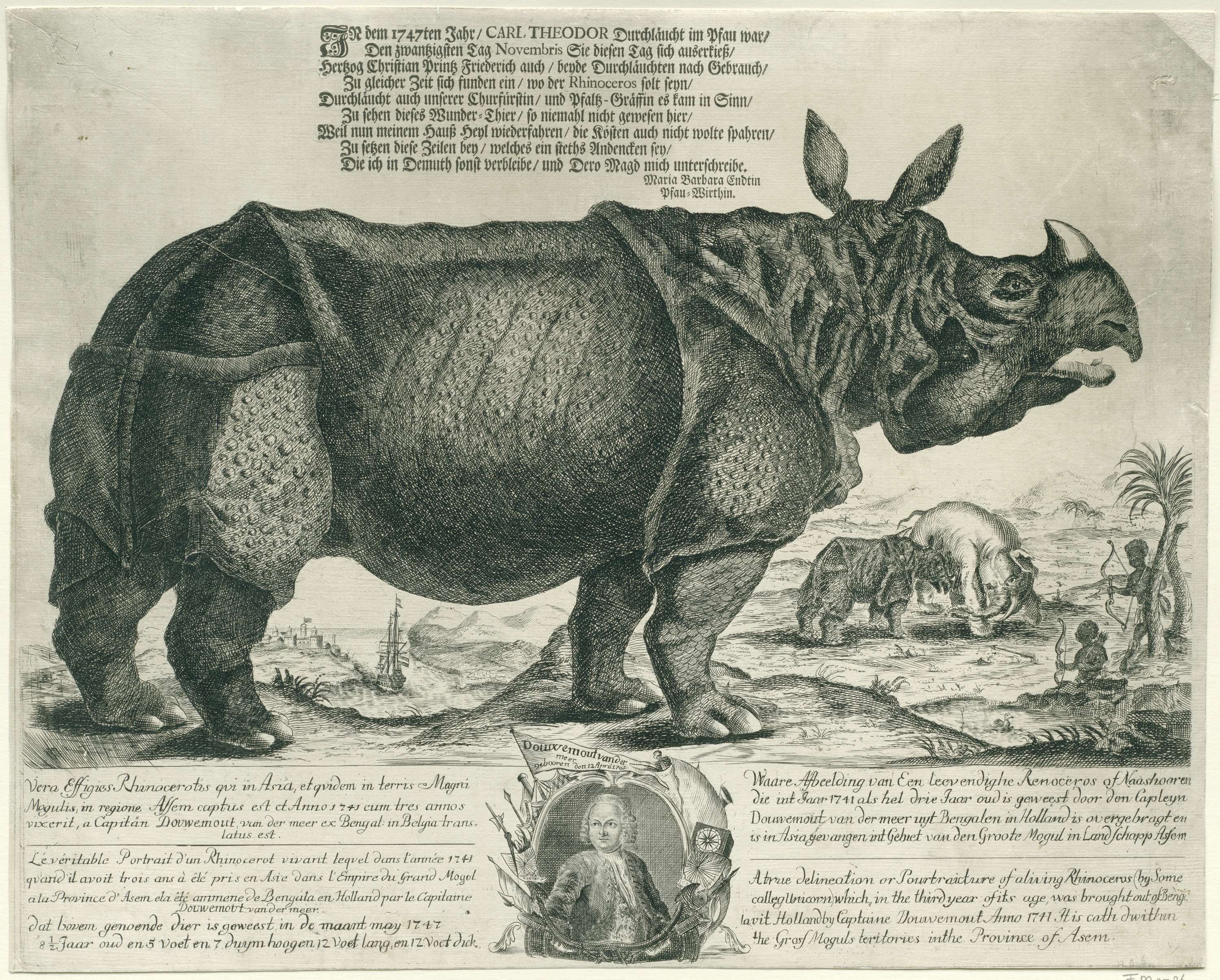 Het succes van Clara brengt Mout ertoe in 1747 een nieuwe prent te maken. Hierop staan nu ook zijn eigen portret en het schip waarmee Clara naar Europa kwam. De eigenares van de herberg in Mannheim waar Clara te zien is, Maria Barbara Endtin, laat hier zelf nog een gedichtje bij drukken nadat keurvorst Karl ...