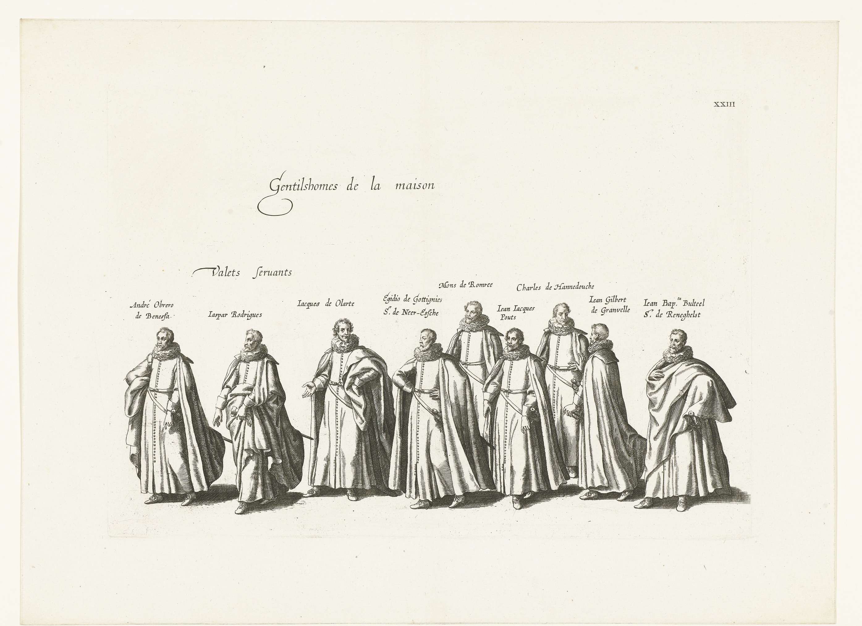 Deelnemers aan de begrafenisstoet. Plaat XXIII in de serie van de begrafenis van aartshertog Albrecht van Oostenrijk te Brussel op 12 maart 1622.