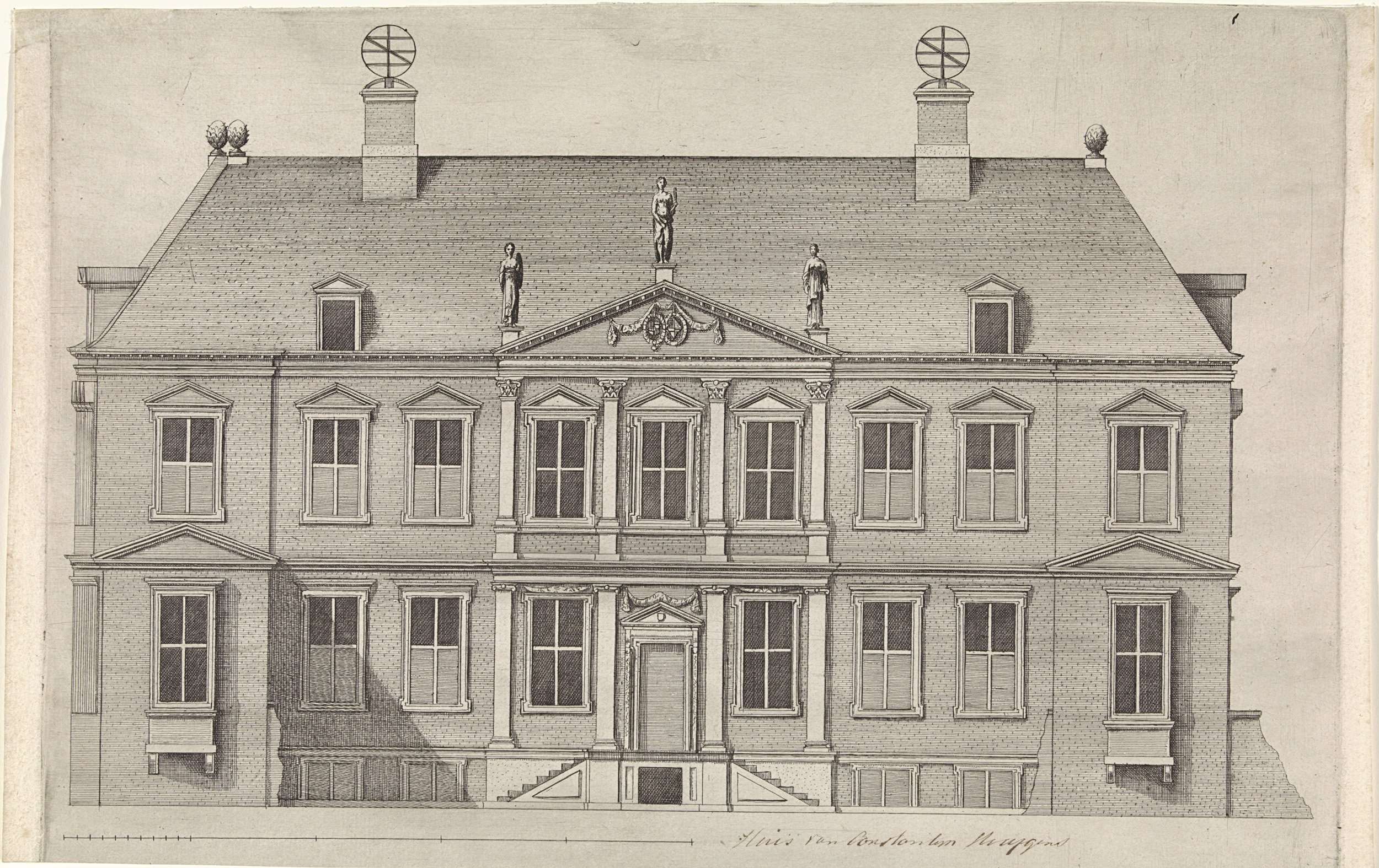 Huis van Constantijn Huygens, dat gestaan heeft aan het Plein in Den Haag, van opzij gezien.