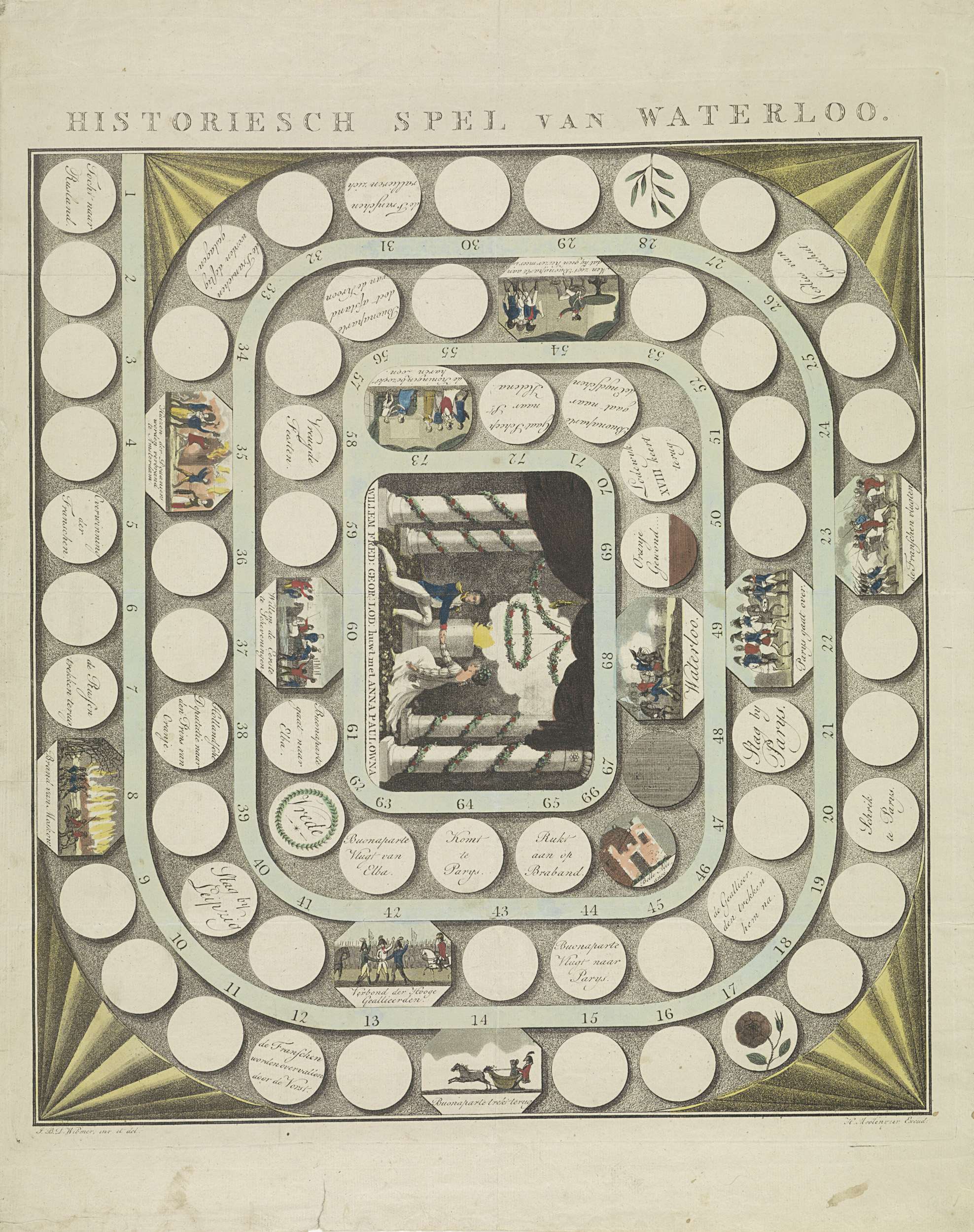 Ganzenbordspel met historische gebeurtenissen op de vakjes. Beginnend met Napoleons veldtocht naar Rusland (1812) en eindigend met het bezoek van de koningin aan de bij de slag bij Waterloo gewonde prins van Oranje (1815). In het midden met het huwelijk van Anna Paulowna en Willem II (1816).
