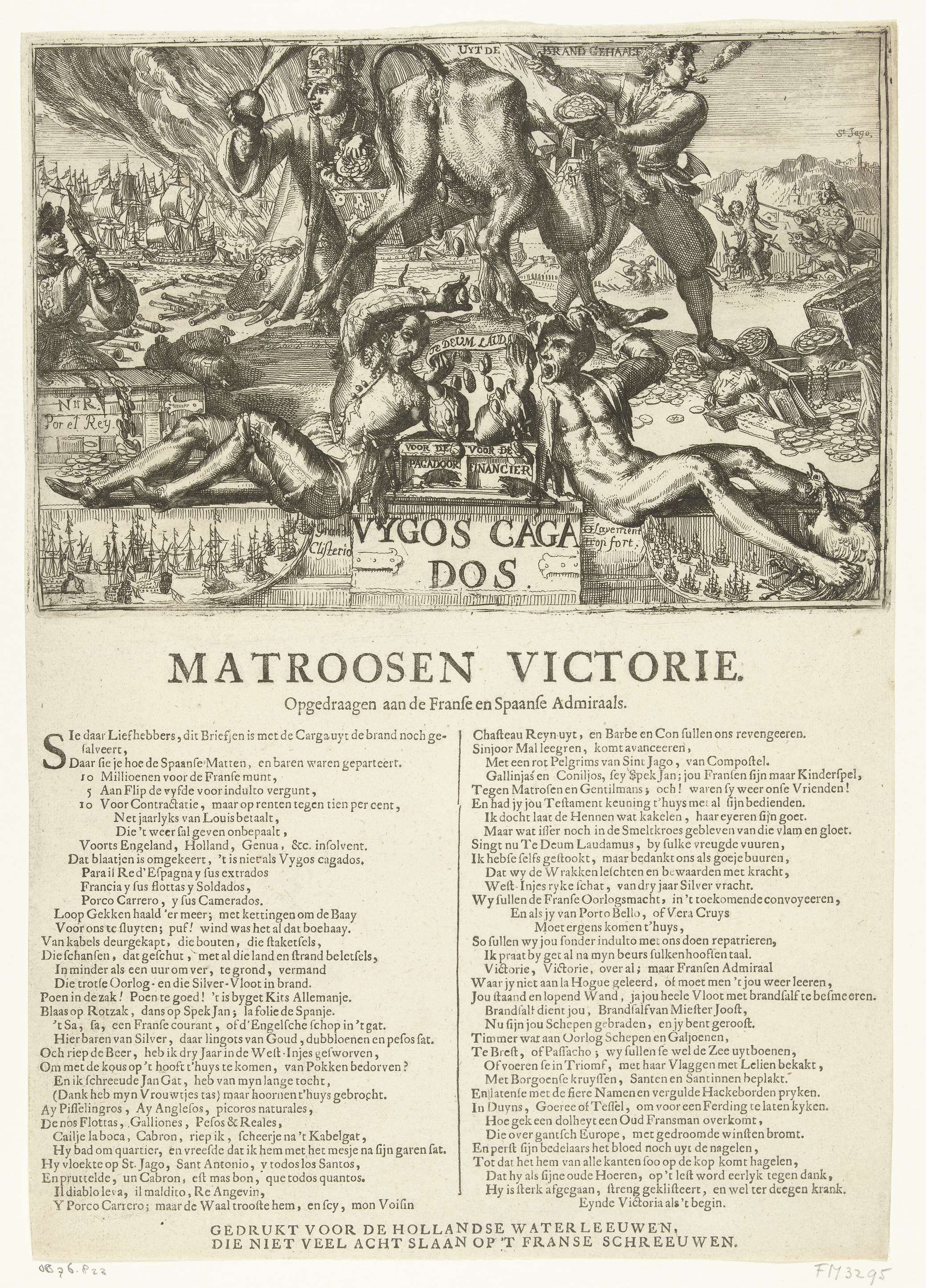 Spotprent op de verovering van de Spaanse zilvervloot te Vigo, 1702