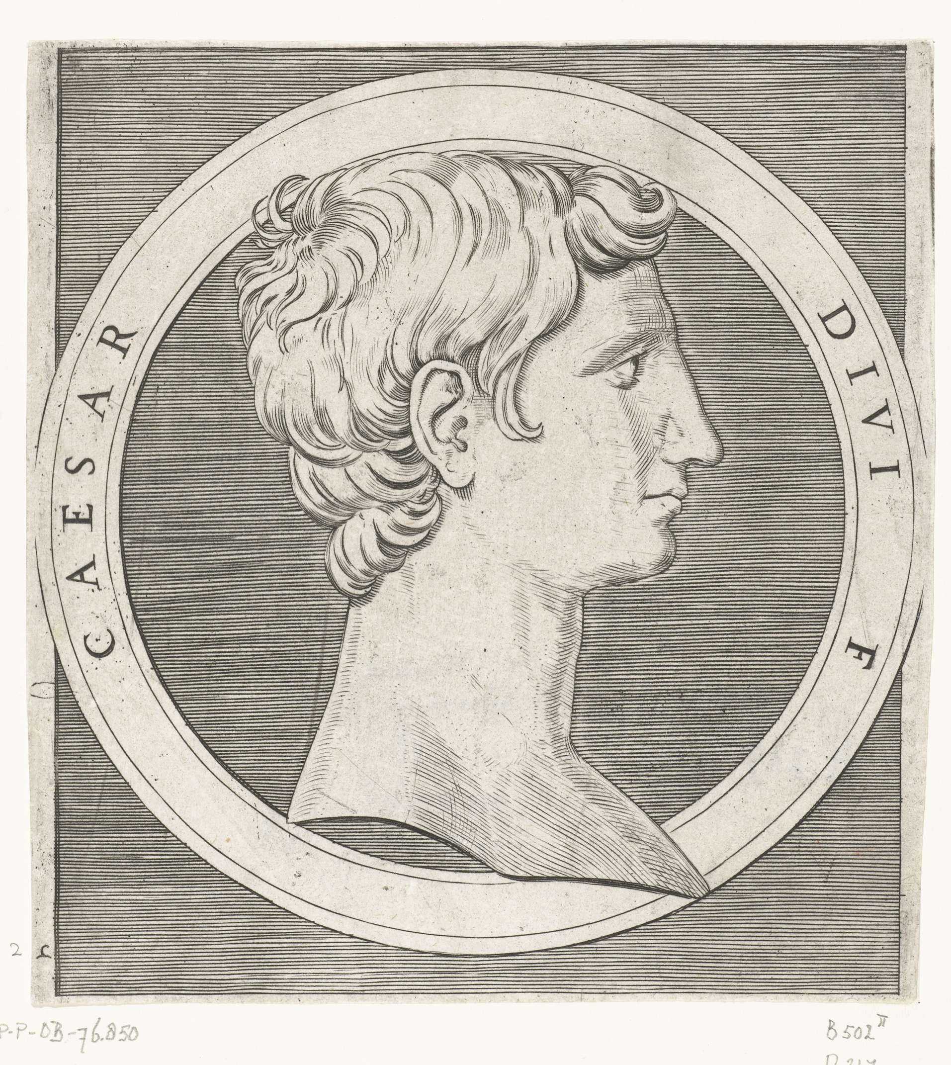 Portret van keizer Augustus in ronde omlijsting