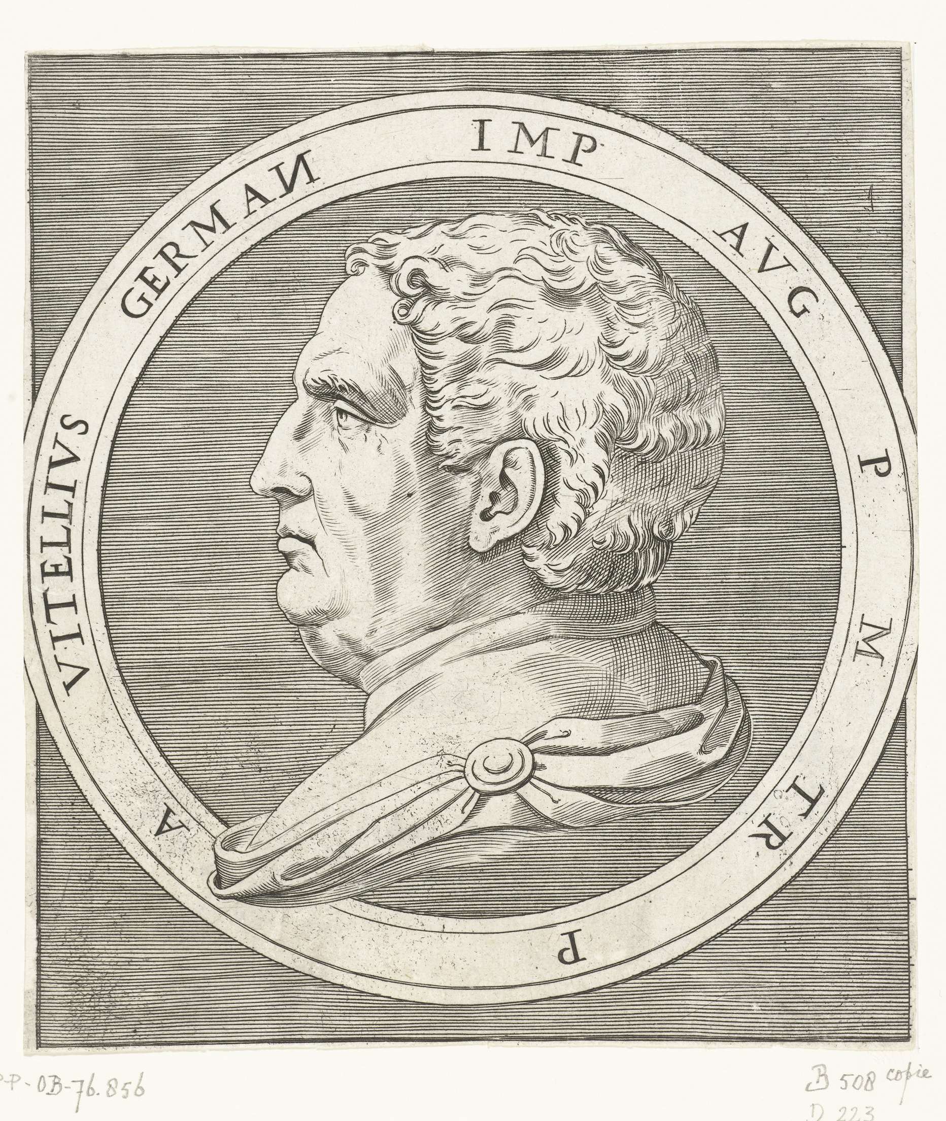 Portret van keizer Vitellius in ronde omlijsting
