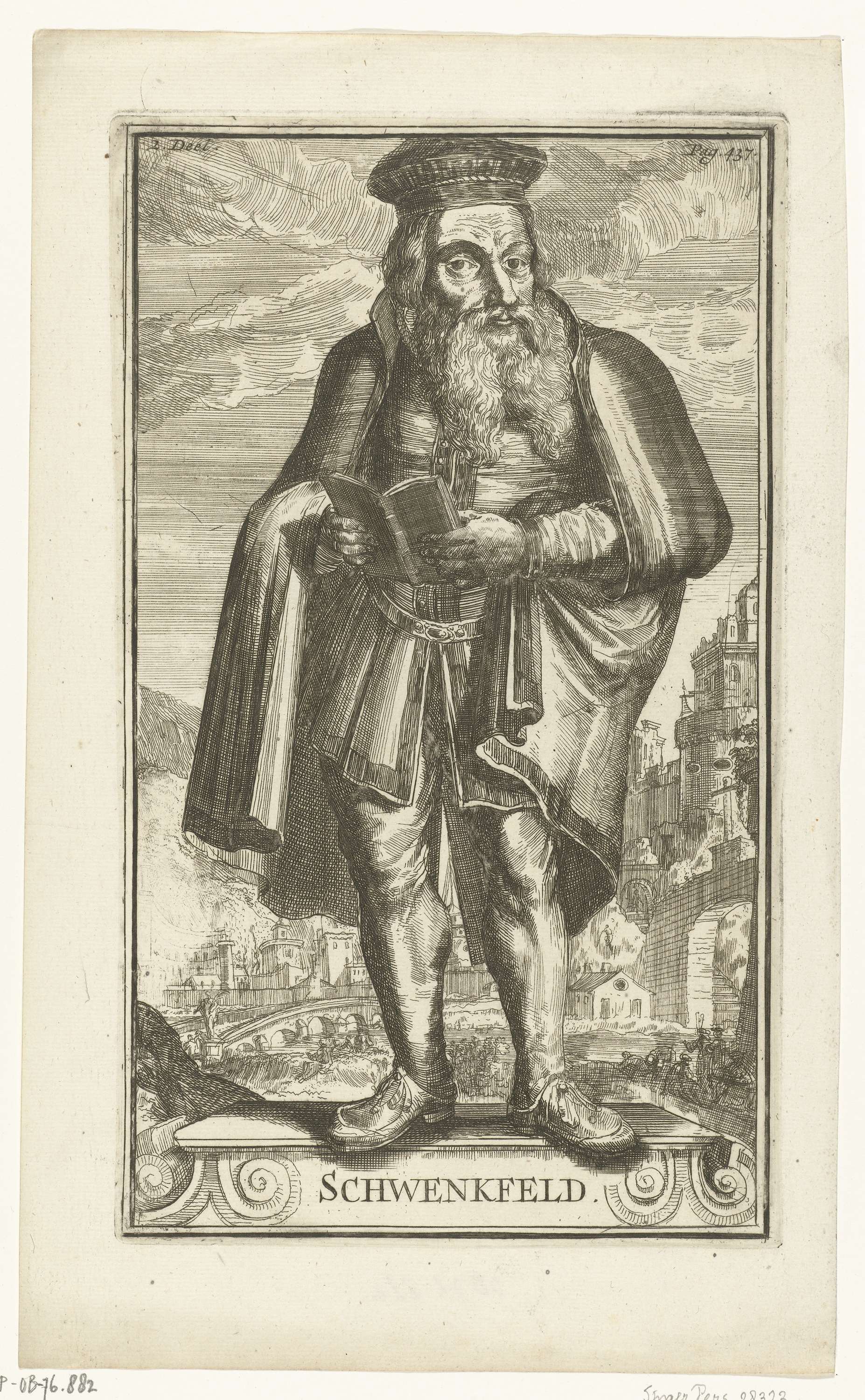 Portret van Kaspar Schwenkfeld uit een serie portretten in Historie der Kerken en ketteren van den beginne des Nieuwen Testaments tot aan het jaar onses Heeren 1688 van Godfried Arnold (1701).