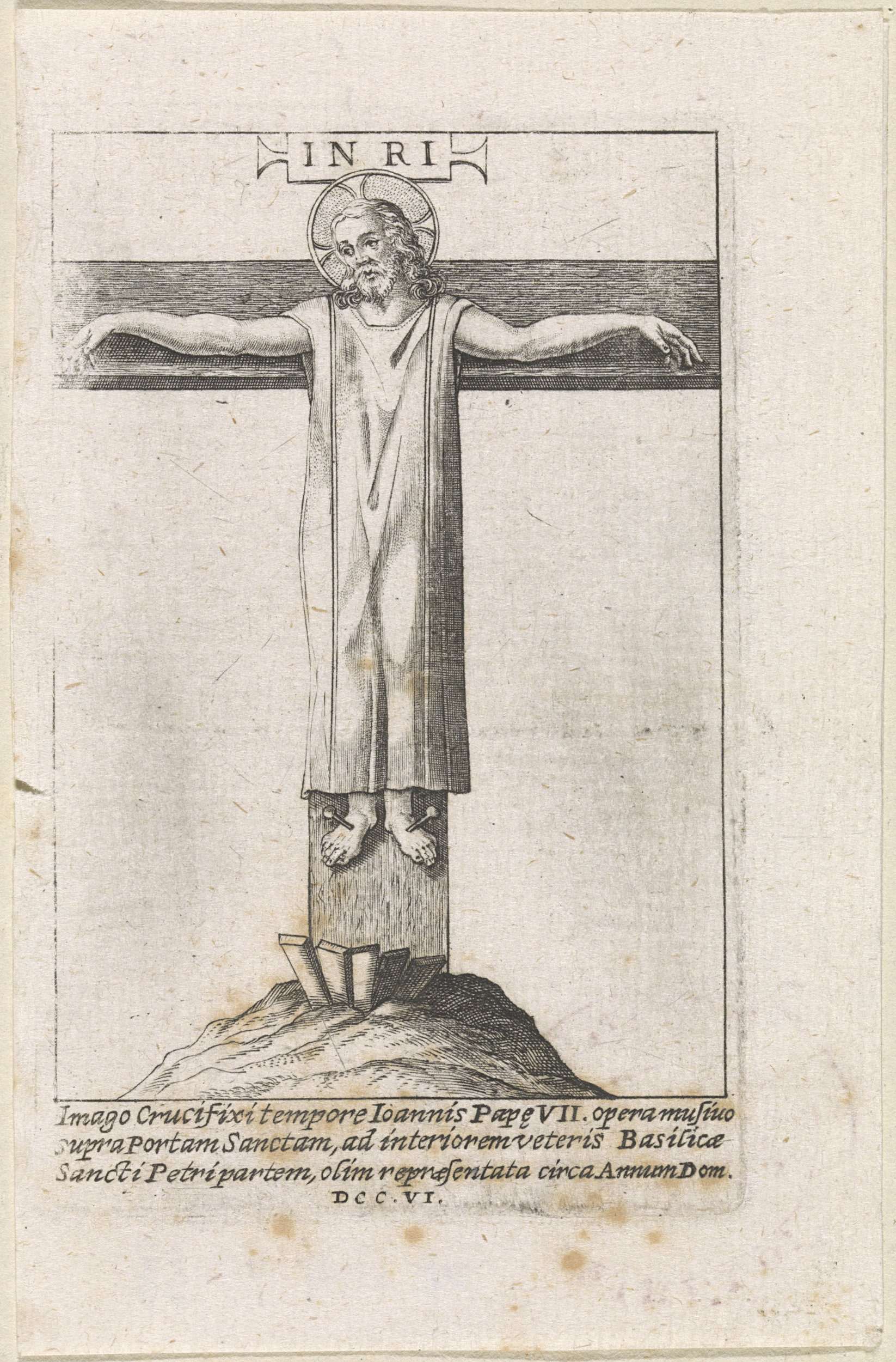 Christus in een lang gewaad aan het kruis