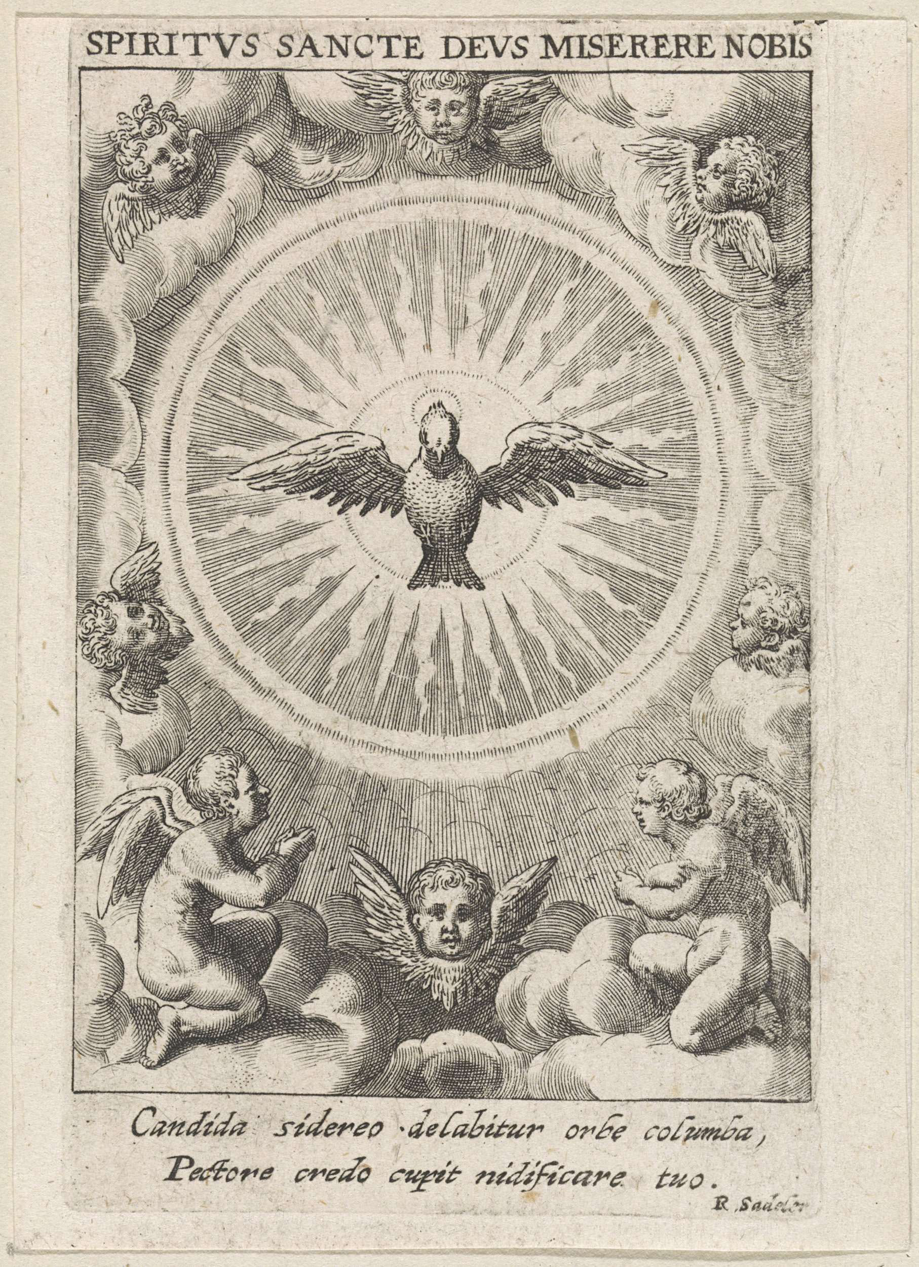Heilige Geest als duif in een stralenkrans, omringd door cherubijnen
