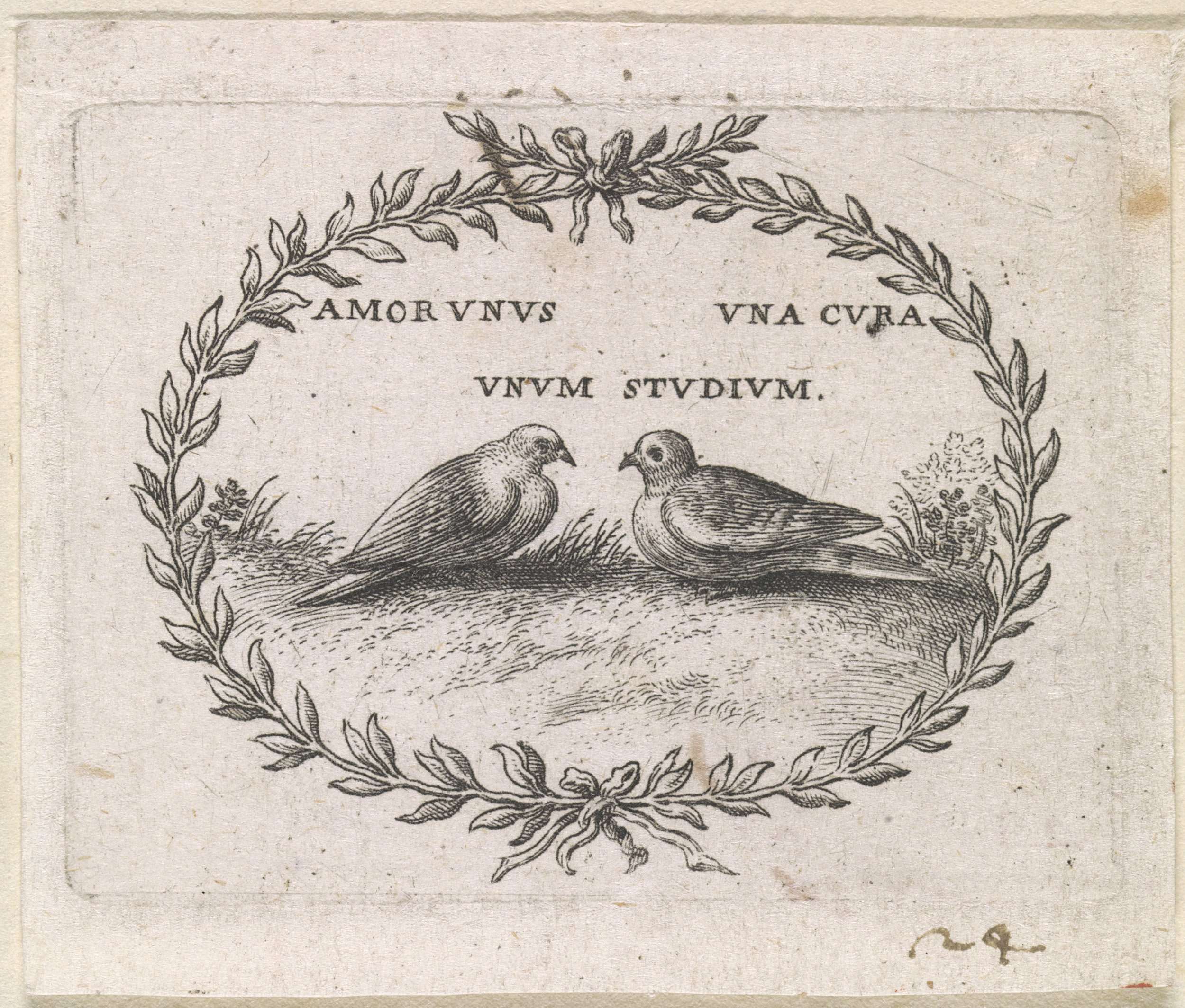 Twee duiven in een laurierkrans
