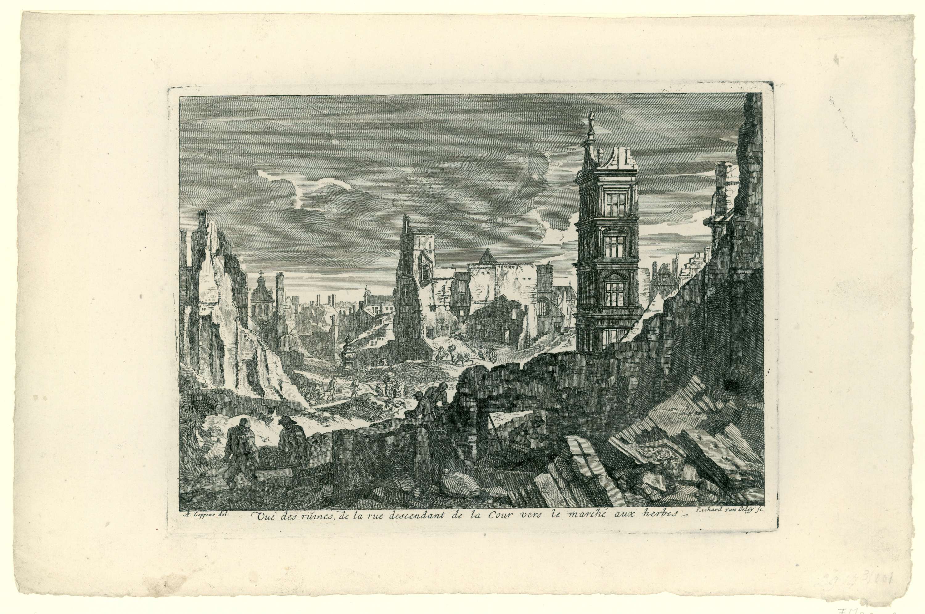 Ruïnes bij de Grasmarkt te Brussel, 1695