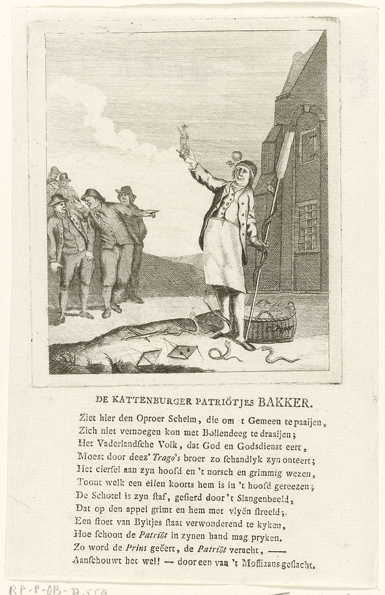 Spotprent op de Orangistische broodbakker Schreuder op Kattenburg in Amsterdam, 1787