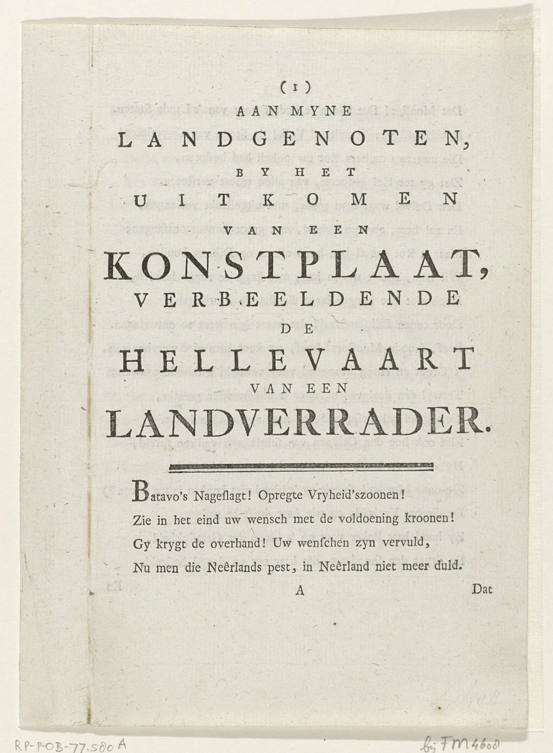 Vers op de prent van de hellevaart van een landverrader, 1784