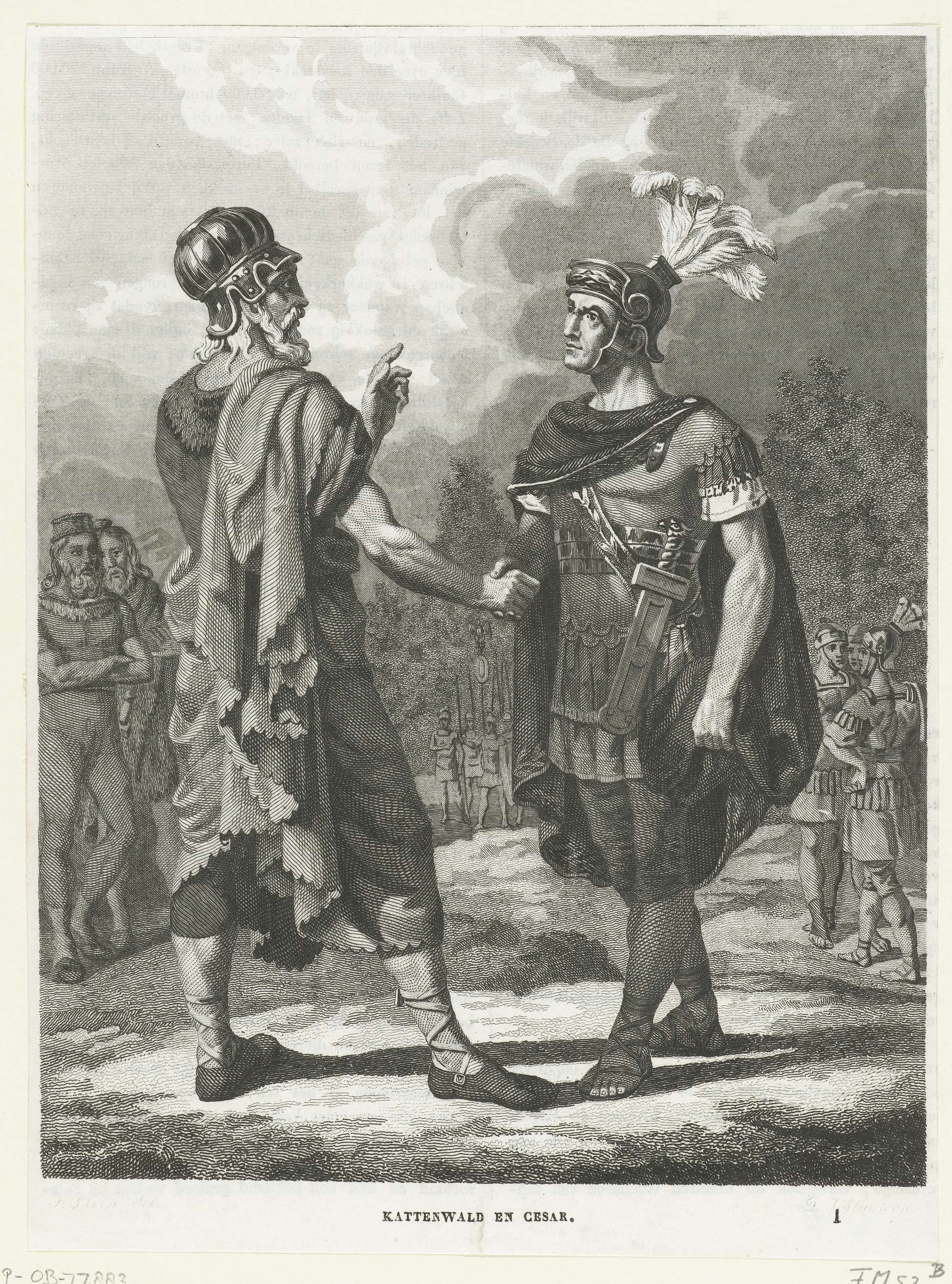 Kattenwald, de leider van de Germaanse stam der Chatten, schudt Julius Ceasar de hand