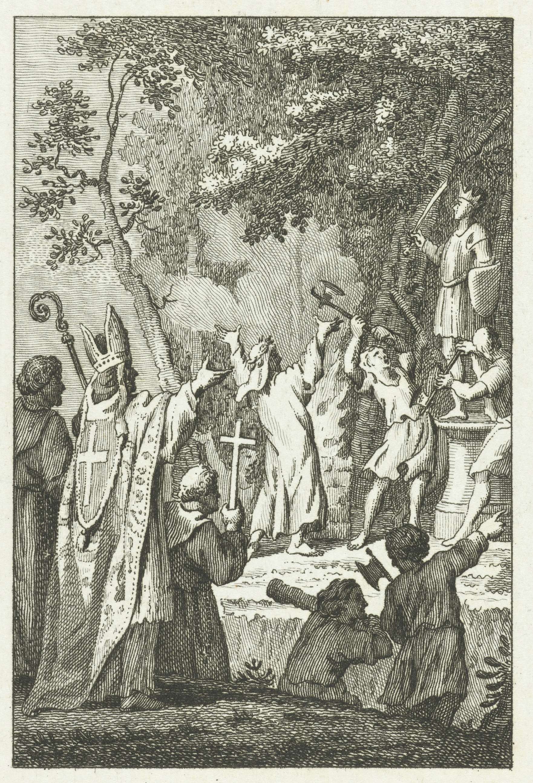 Op bevel van Willibrord wordt het beeld van de Germaanse god Wodan te Westkapelle verbrijzeld, 695