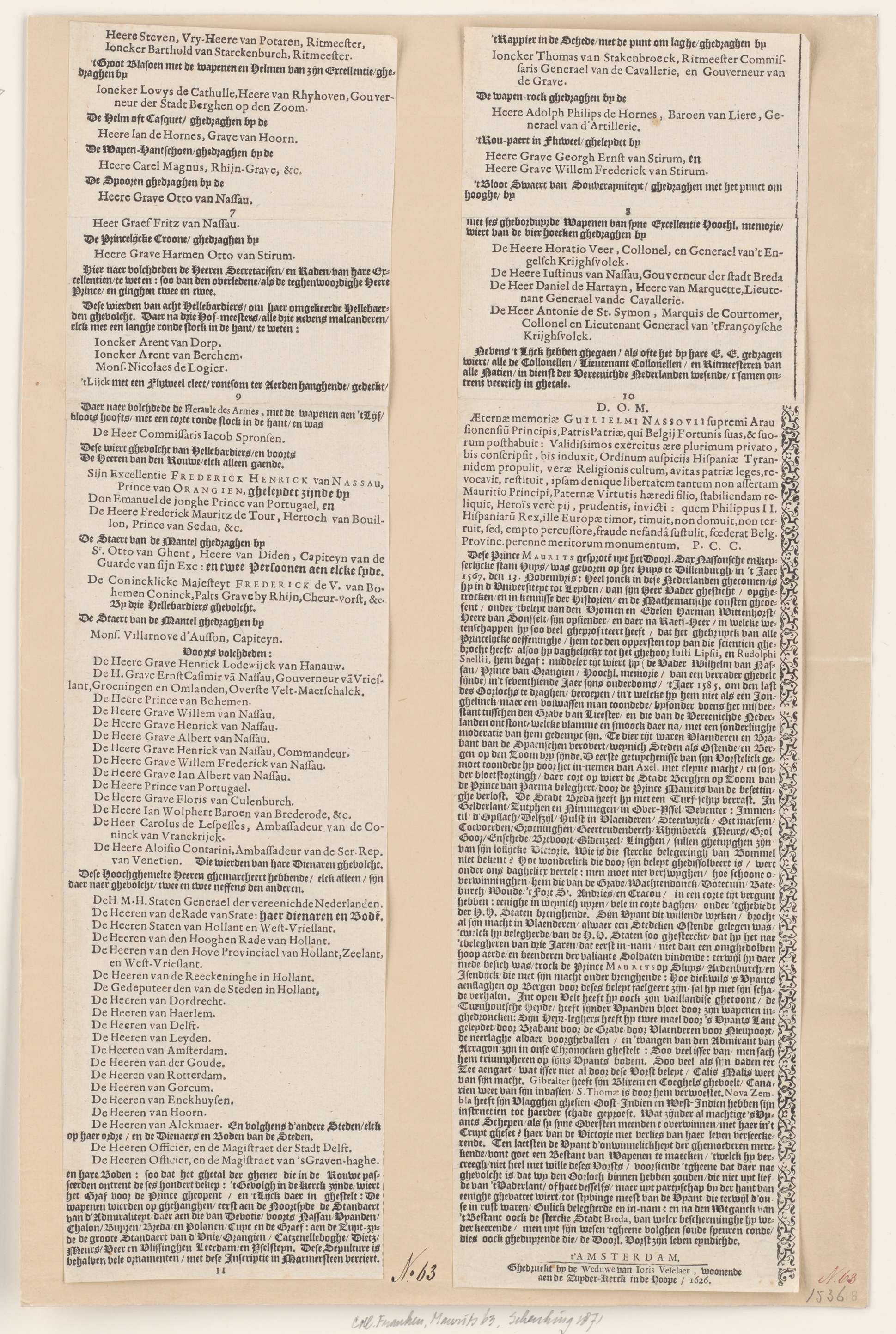 Lijkstatie van prins Maurits in 1625, tekstblaadjes 7-12