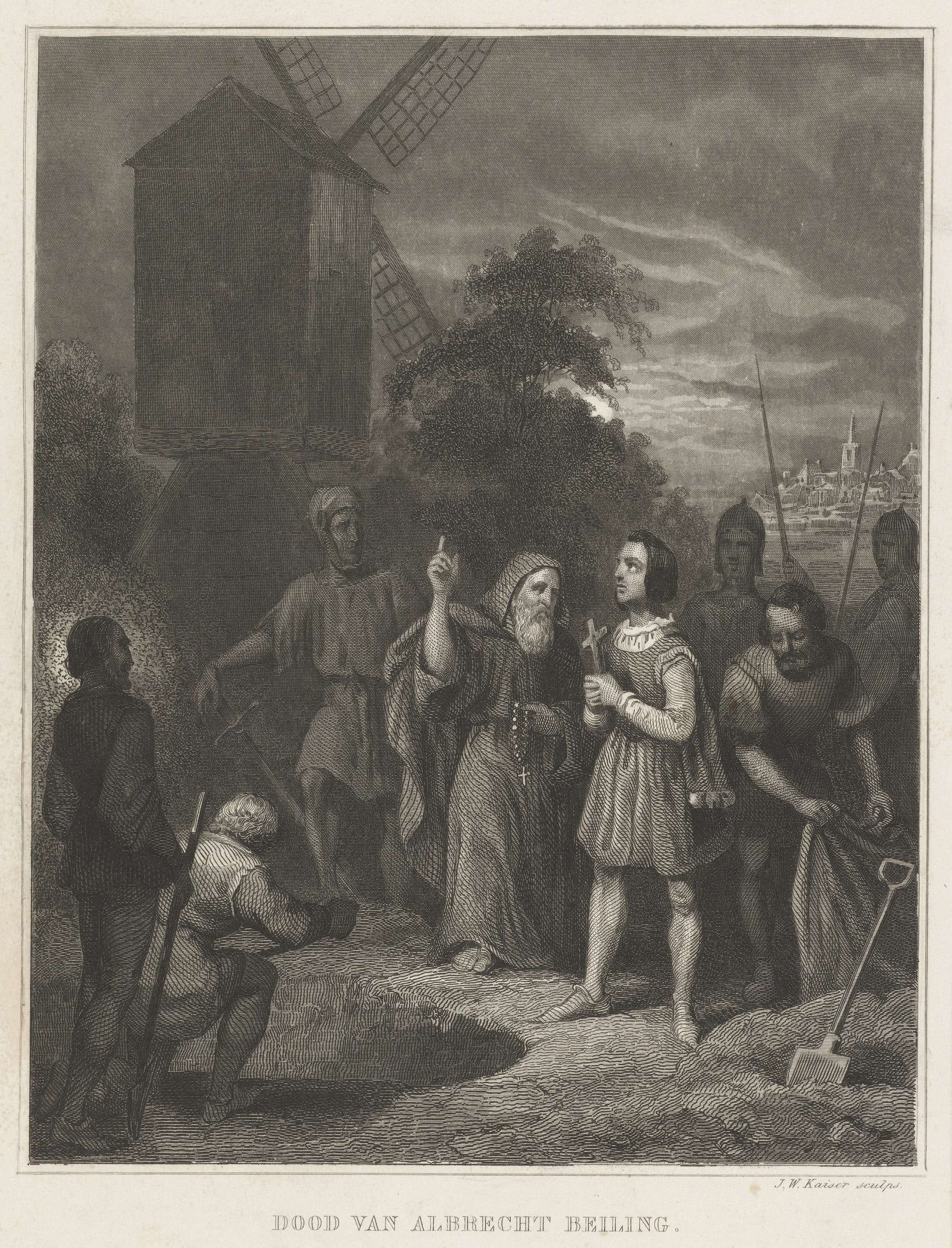 Albrecht Beiling, bevelhebber in Schoonhoven, door Jacoba van Beieren veroordeeld om levend begraven te worden, maakt zich klaar om te sterven, januari 1426.
