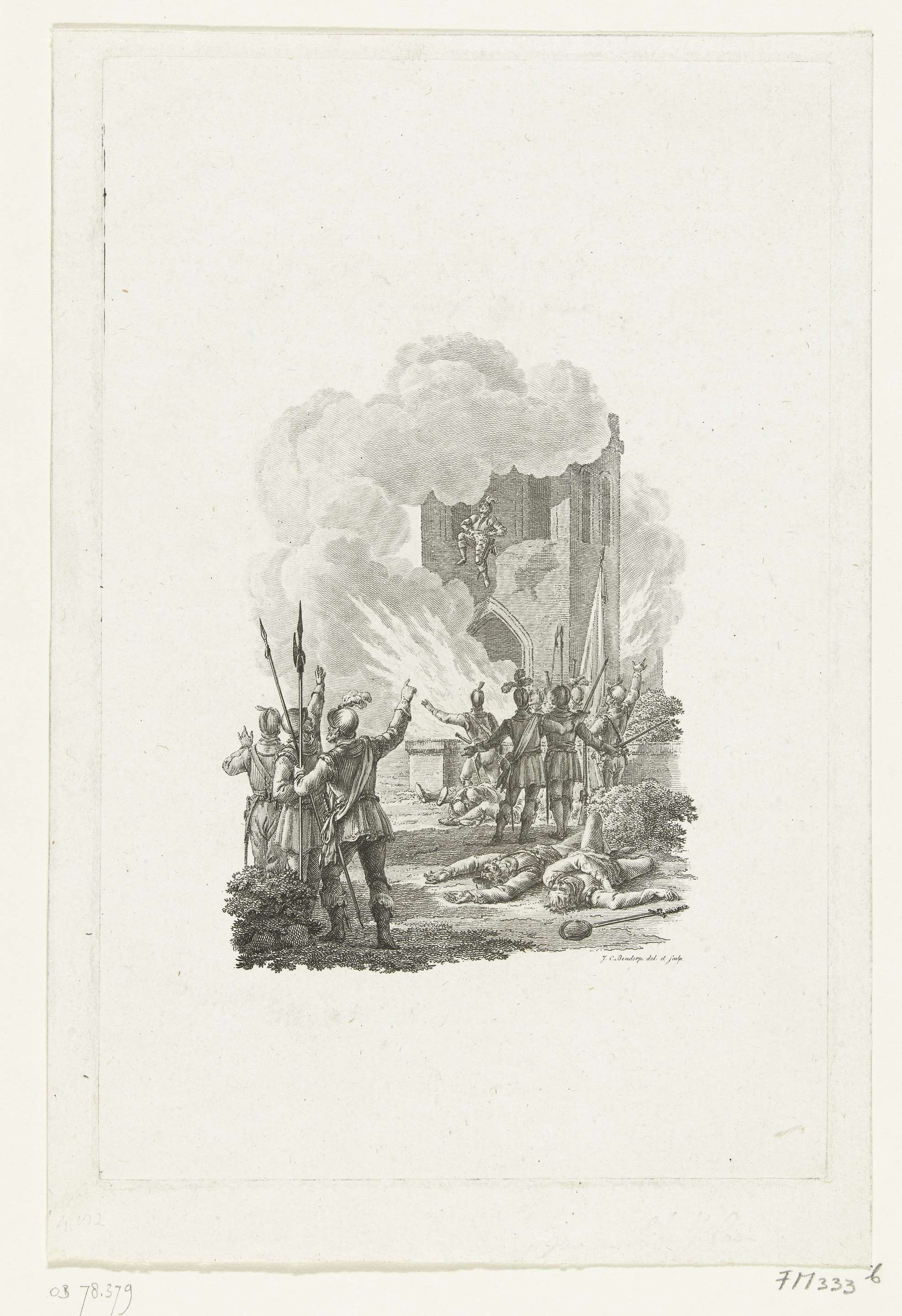 Jan van Schaffelaar springt (rechtop) van de toren van Barneveld, 16 juli 1482.