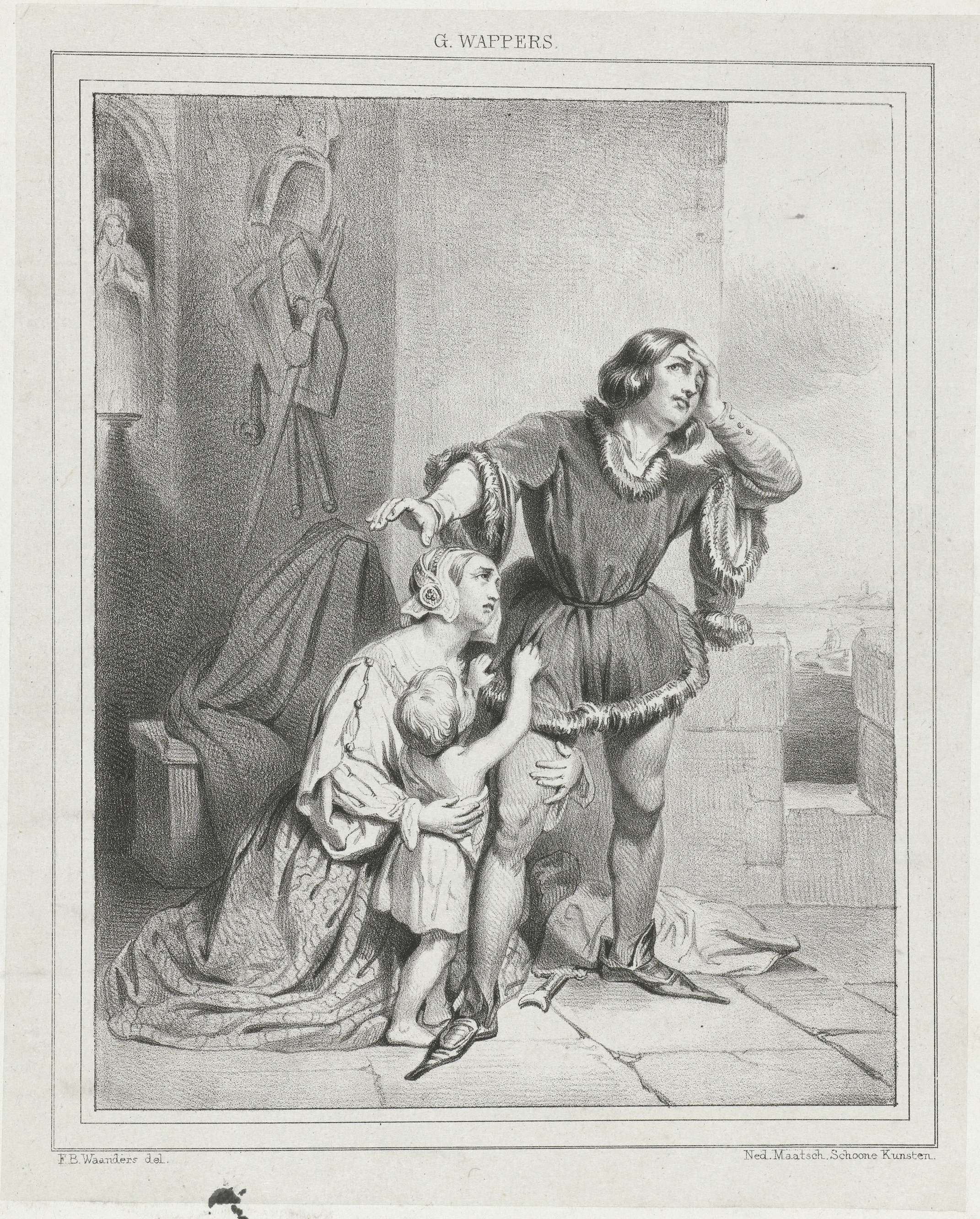 Albrecht Beiling neemt afscheid van vrouw en kind, voordat hij in 1425 levend wordt begraven.