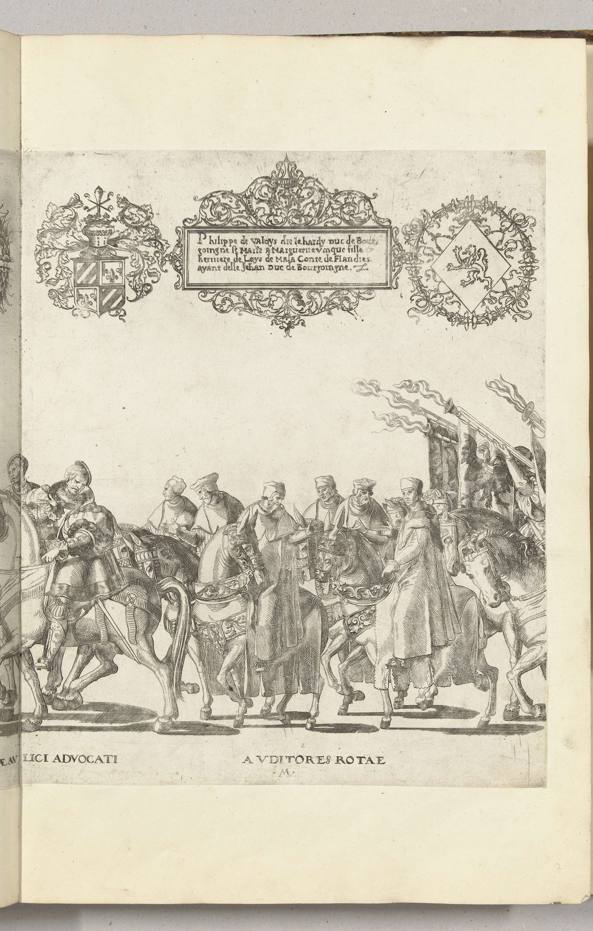 Functionarissen van het pauselijk hof te paard, plaat M. Optocht van Karel V met de paus Clemens VII te Bologna na zijn kroning to keizer, 24 februari 1530.