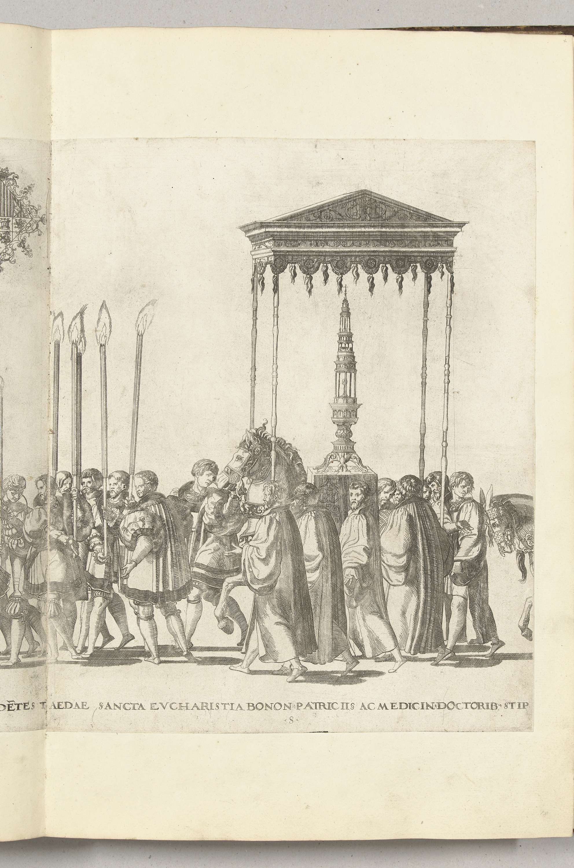 H. Sacrament, plaat S. Optocht van Karel V met de paus Clemens VII te Bologna na zijn kroning to keizer, 24 februari 1530.