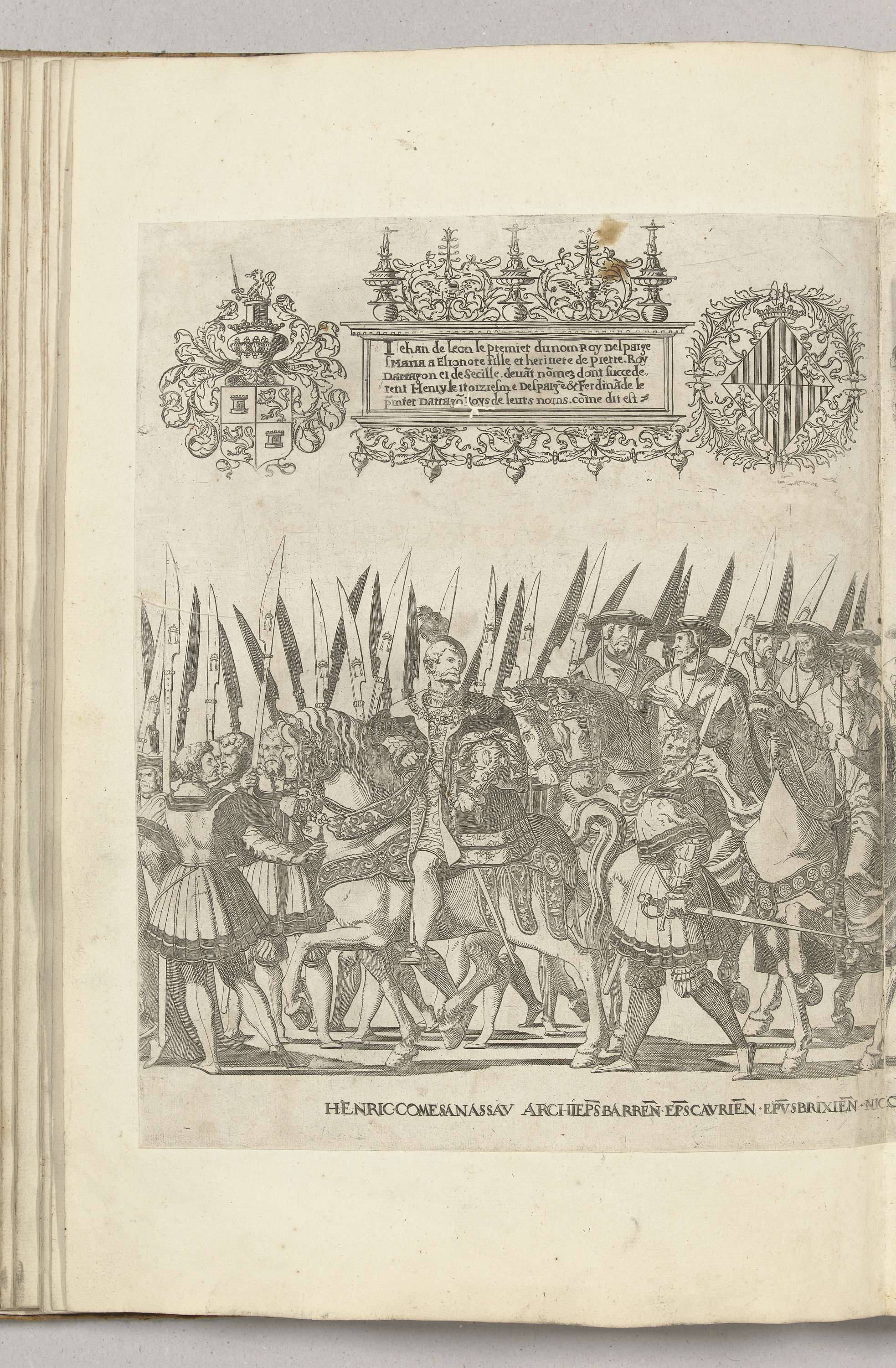 Hendrik III van Nassau-Breda, aartsbisschop van Bari en de bisschoppen van Coria, Palecia, Osma, Arras en Brixen, plaat [FF]. Optocht van Karel V met de paus Clemens VII te Bologna na zijn kroning to keizer, 24 februari 1530.
