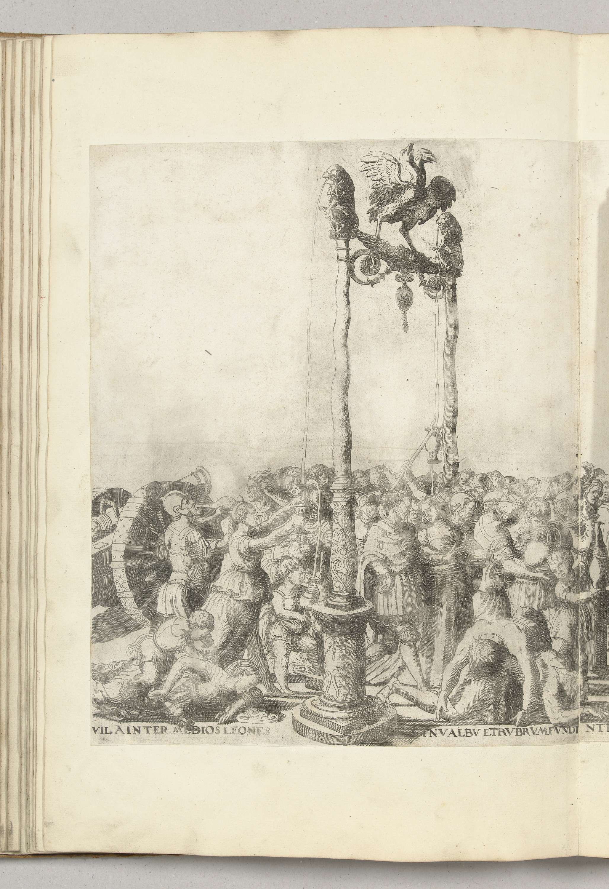 Fontein met wijn en dronkenschap, plaat [OO]. Optocht van Karel V met de paus Clemens VII te Bologna na zijn kroning to keizer, 24 februari 1530.