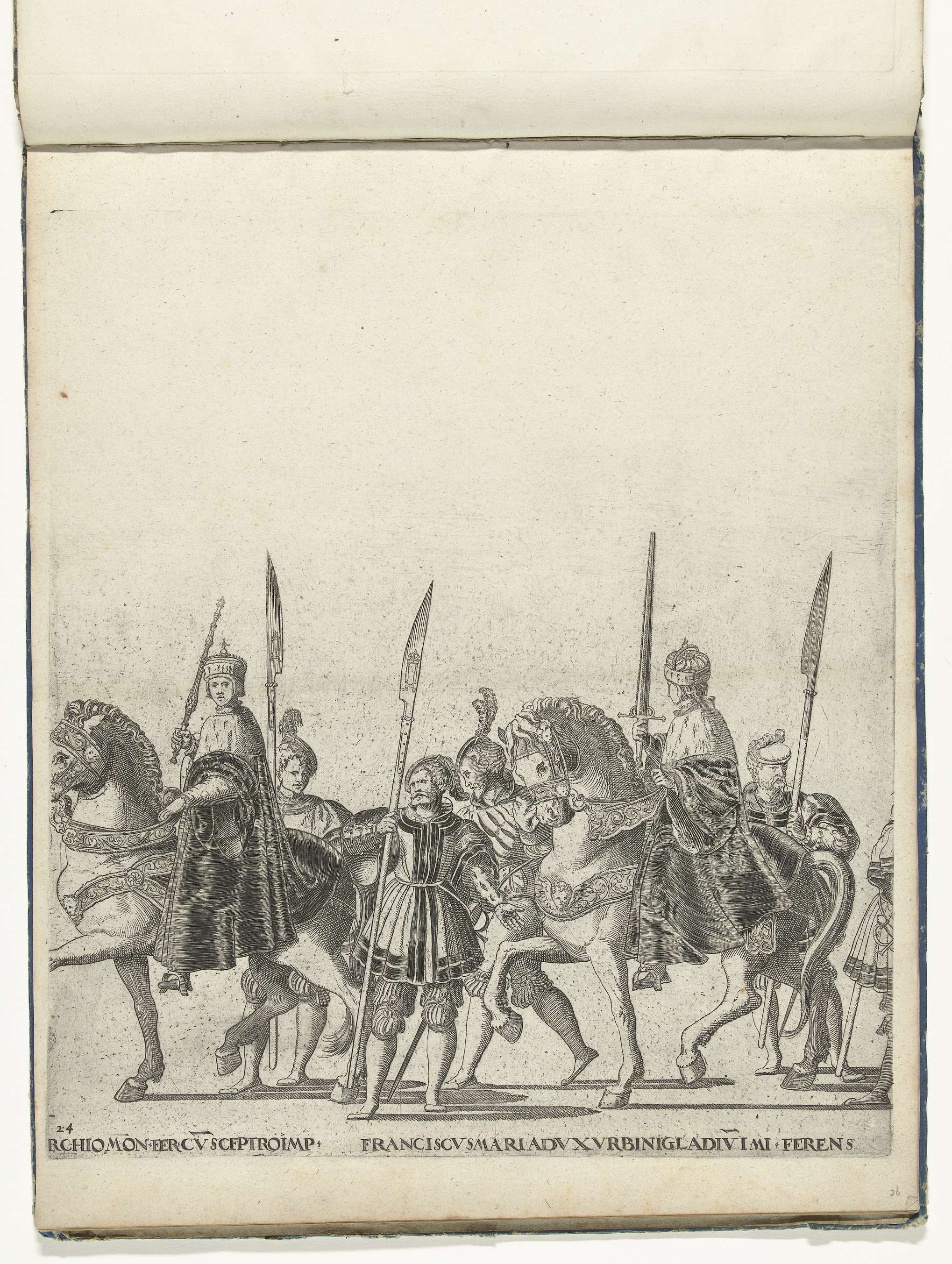 Bonifatius IV Paleologo, markgraaf van Monferrato, met de keizerlijke scepter en Francesco Maria della Rovere, hertog van Urbino, met het keizerlijk zwaard, plaat 24
