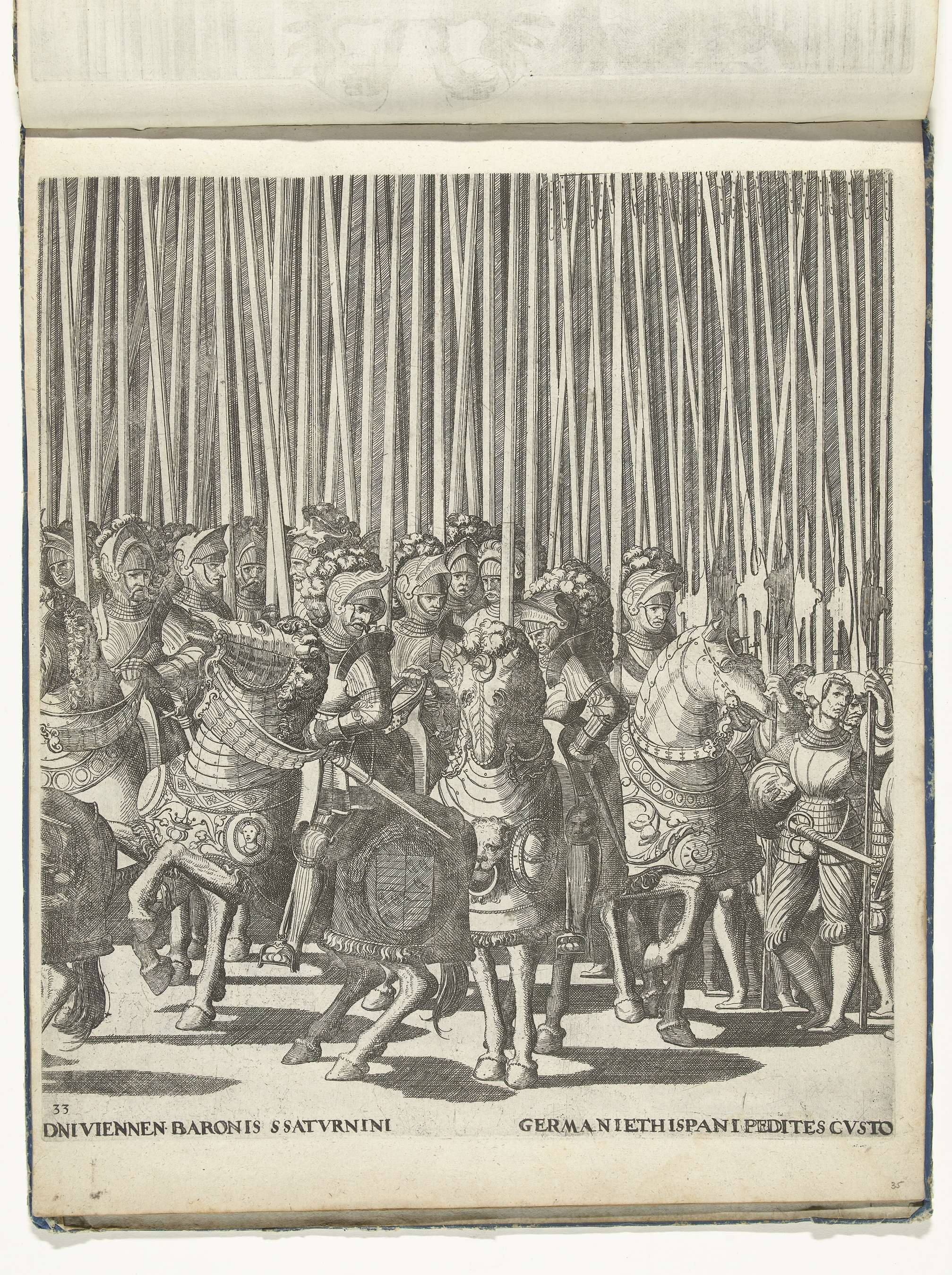 Landsknechten, plaat 33. Optocht van Karel V met de paus Clemens VII te Bologna na zijn kroning to keizer, 24 februari 1530.