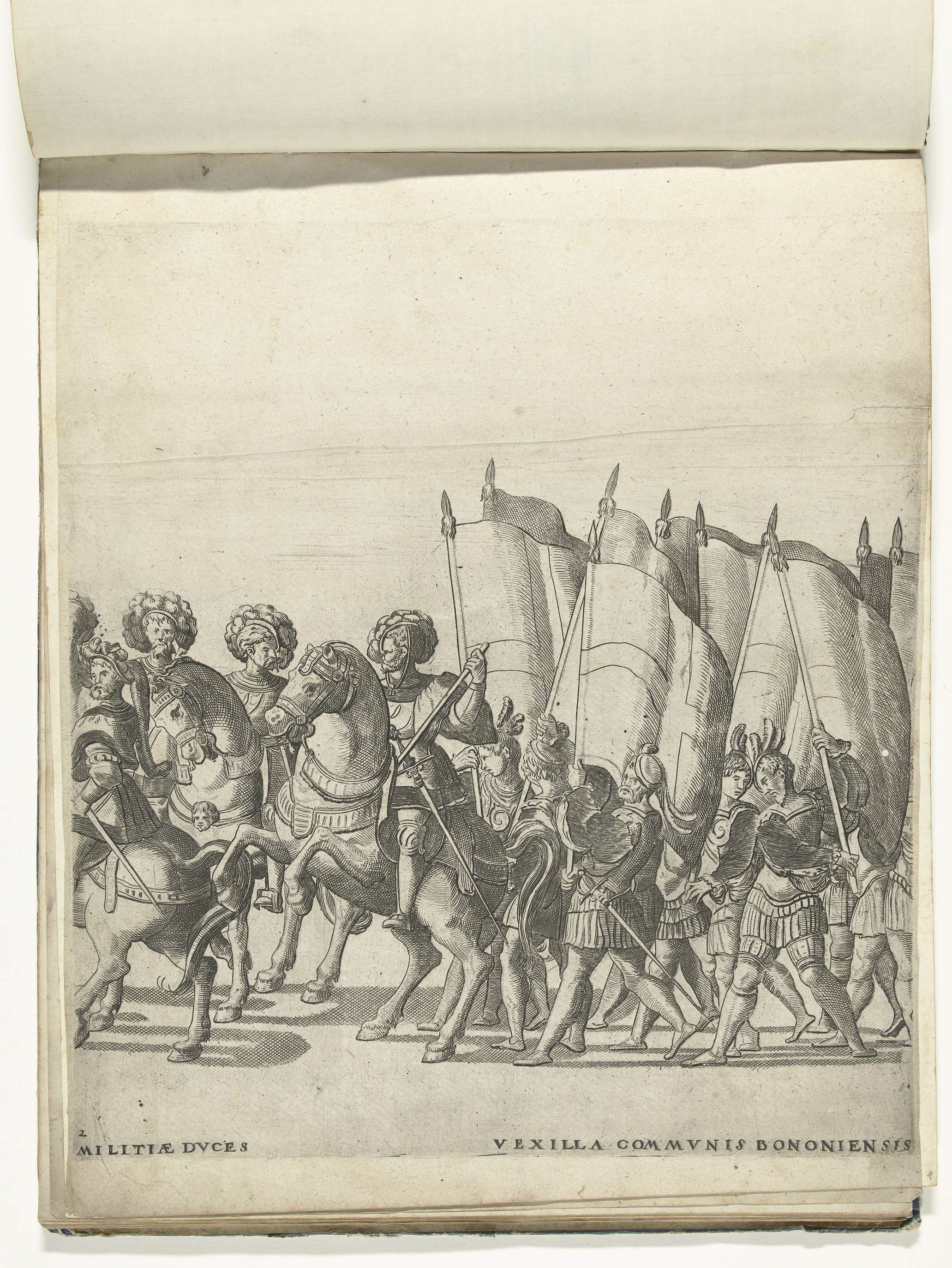 Ruiters en vaandeldragers, plaat 2. Optocht van Karel V met de paus Clemens VII te Bologna na zijn kroning to keizer, 24 februari 1530.