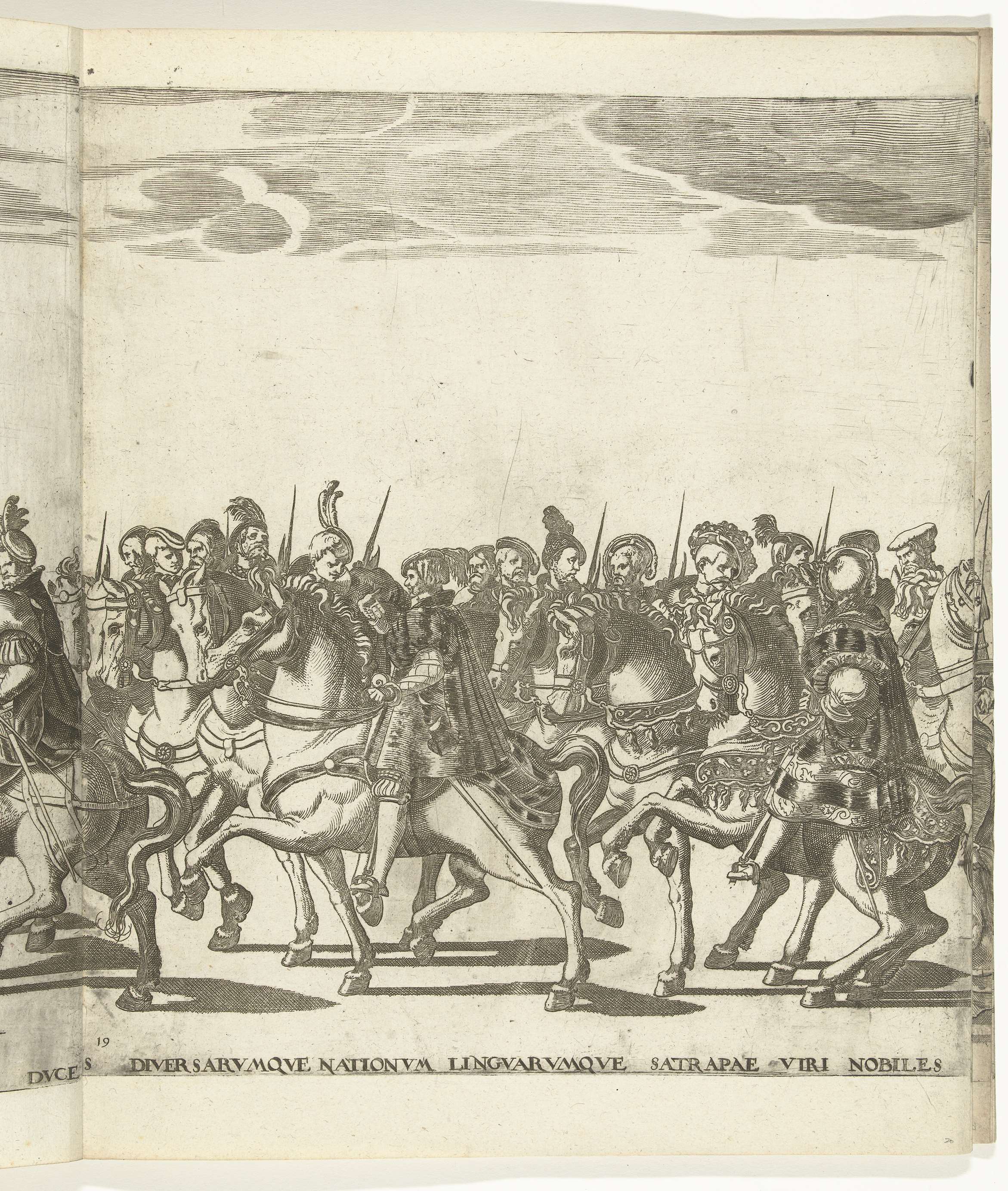 Diverse edelen, plaat 19. Optocht van Karel V met de paus Clemens VII te Bologna na zijn kroning tot keizer, 24 februari 1530.