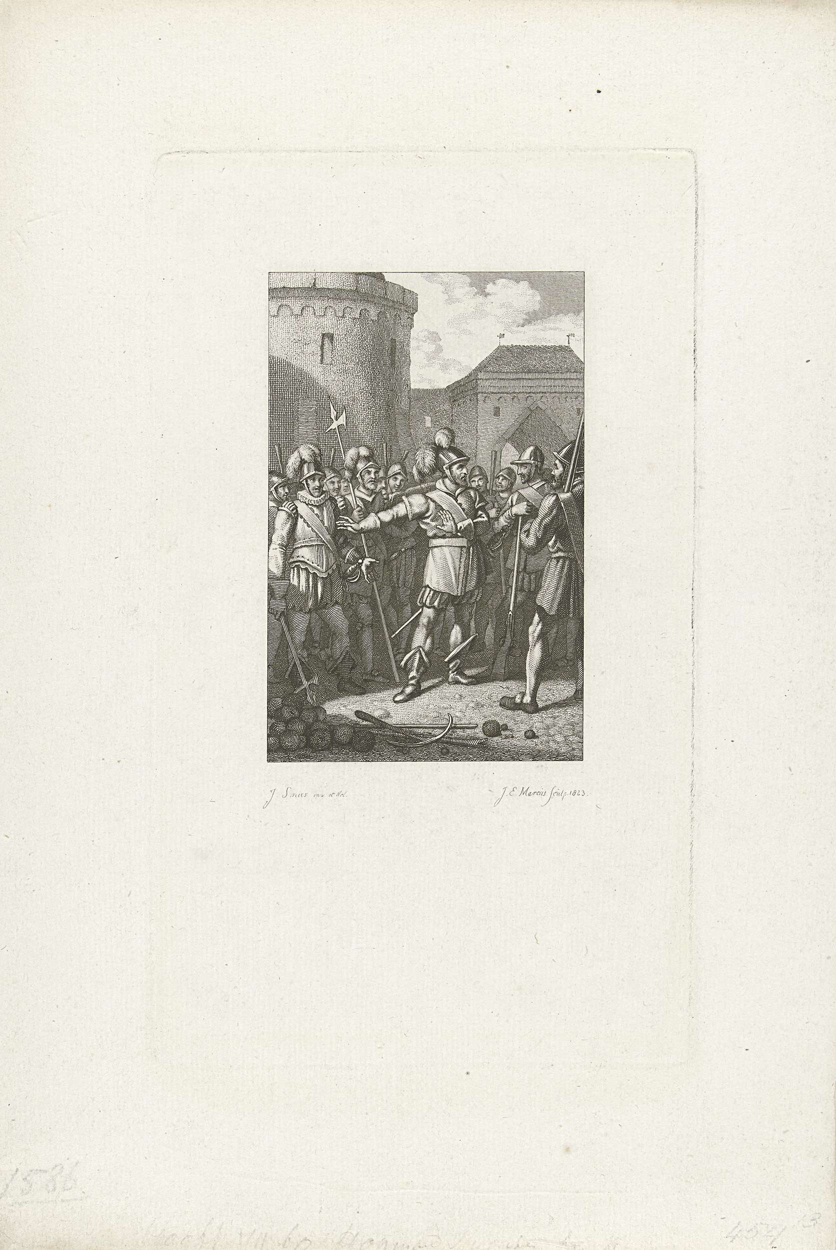 Hopman Splinter Helmich op het huis te Well, 1586
