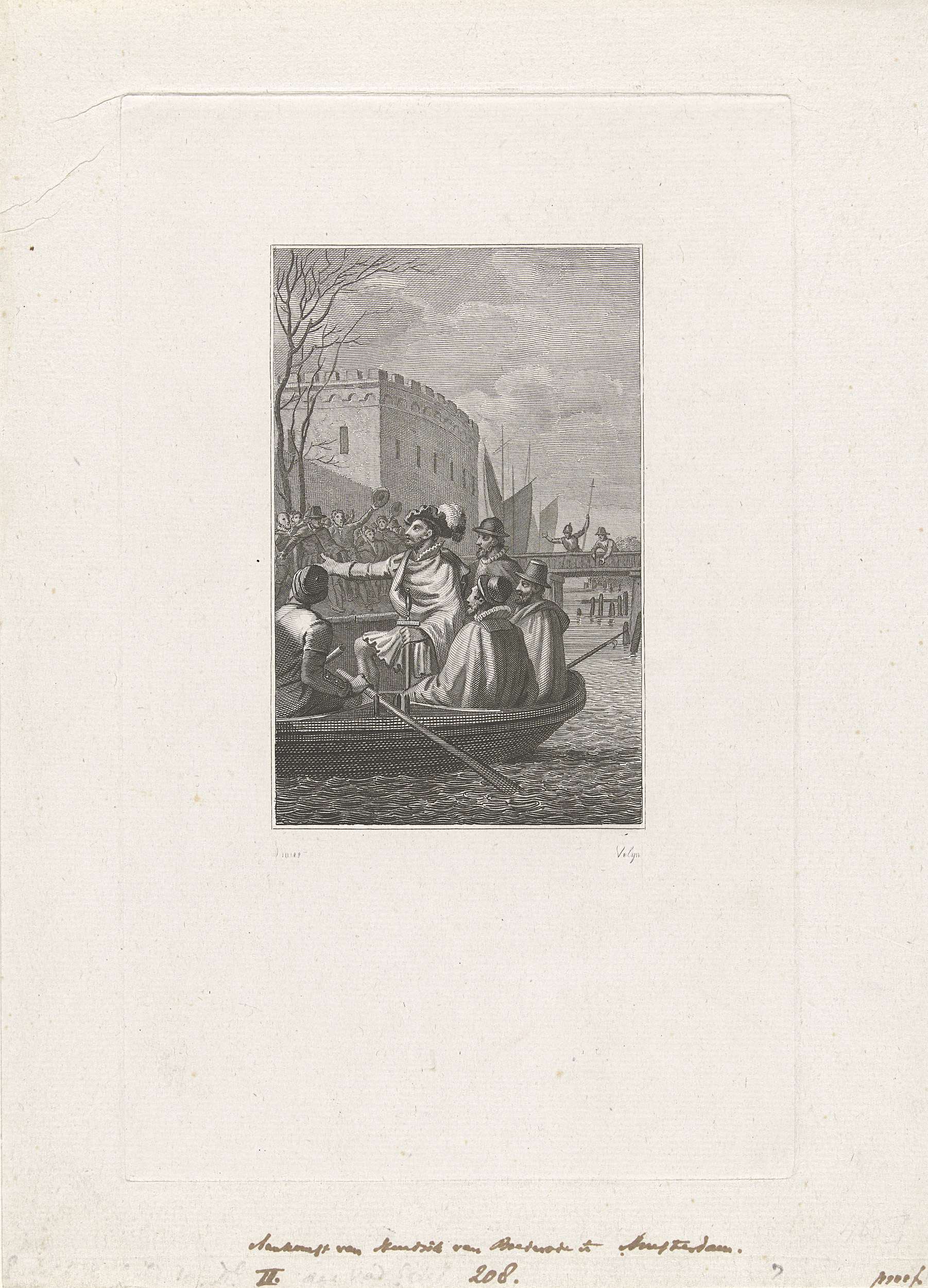 De aankomst van Hendrik van Brederode te Amsterdam, in een boot op het water, 27 januari 1567.
