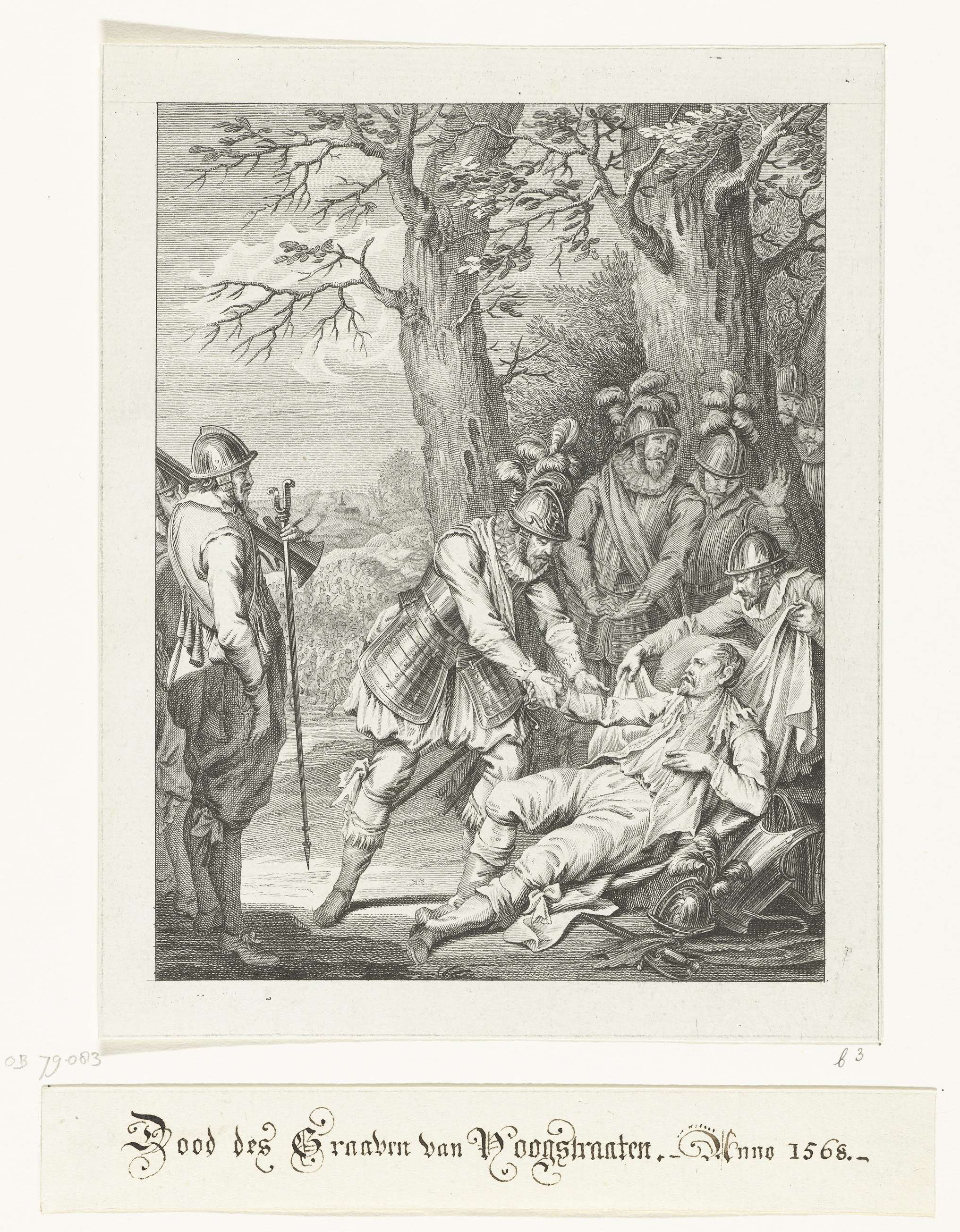 Dood van de graaf van Hoogstraten, te midden van soldaten, de hand vastgehouden door prins Willem I, 11 december 1568. Derde zang.
