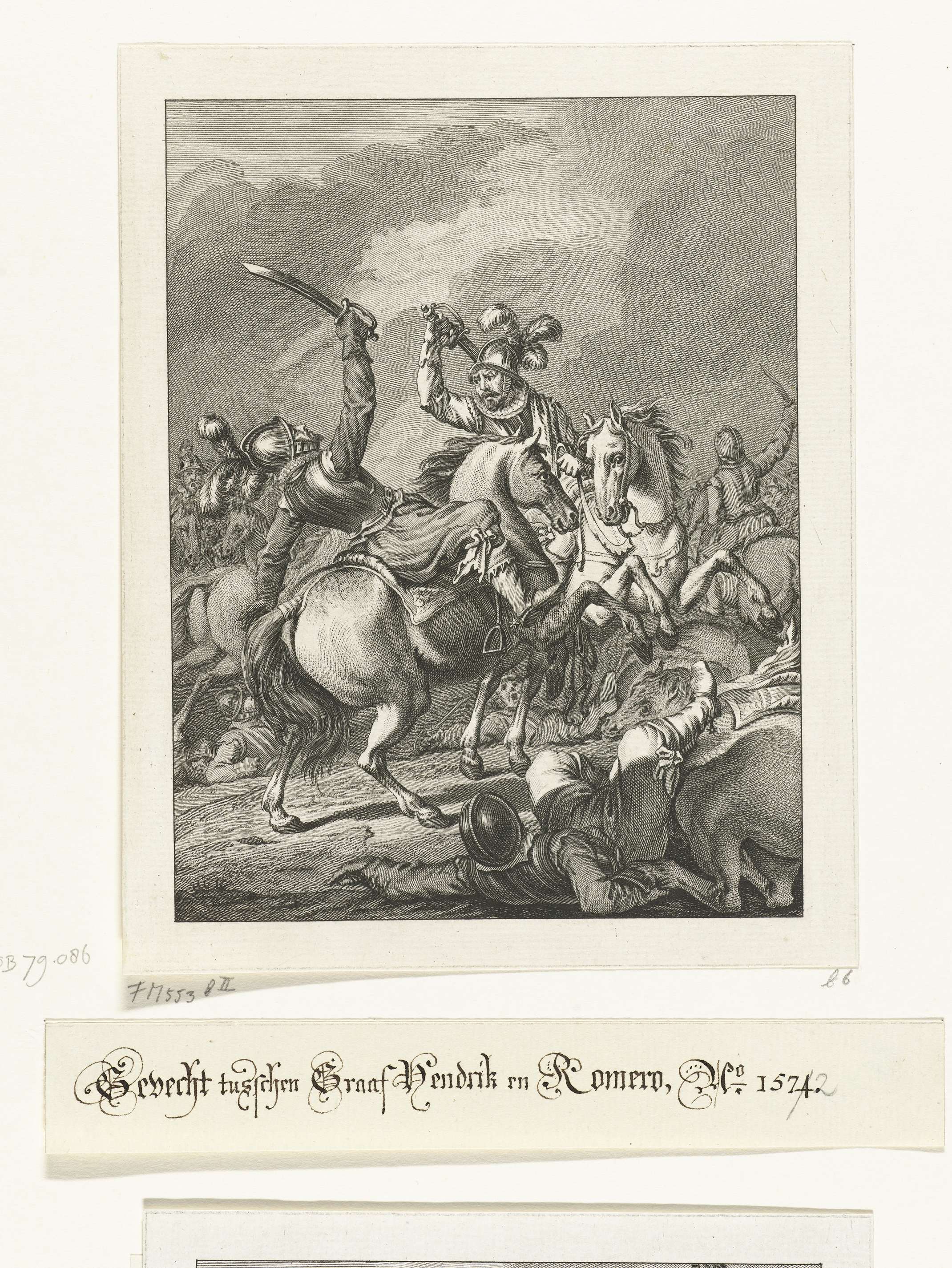 Gevecht tussen Romero en Hendrik, graaf van Nassau, beiden te paard, tijdens de strijd om Mons, 1572. Zesde zang.