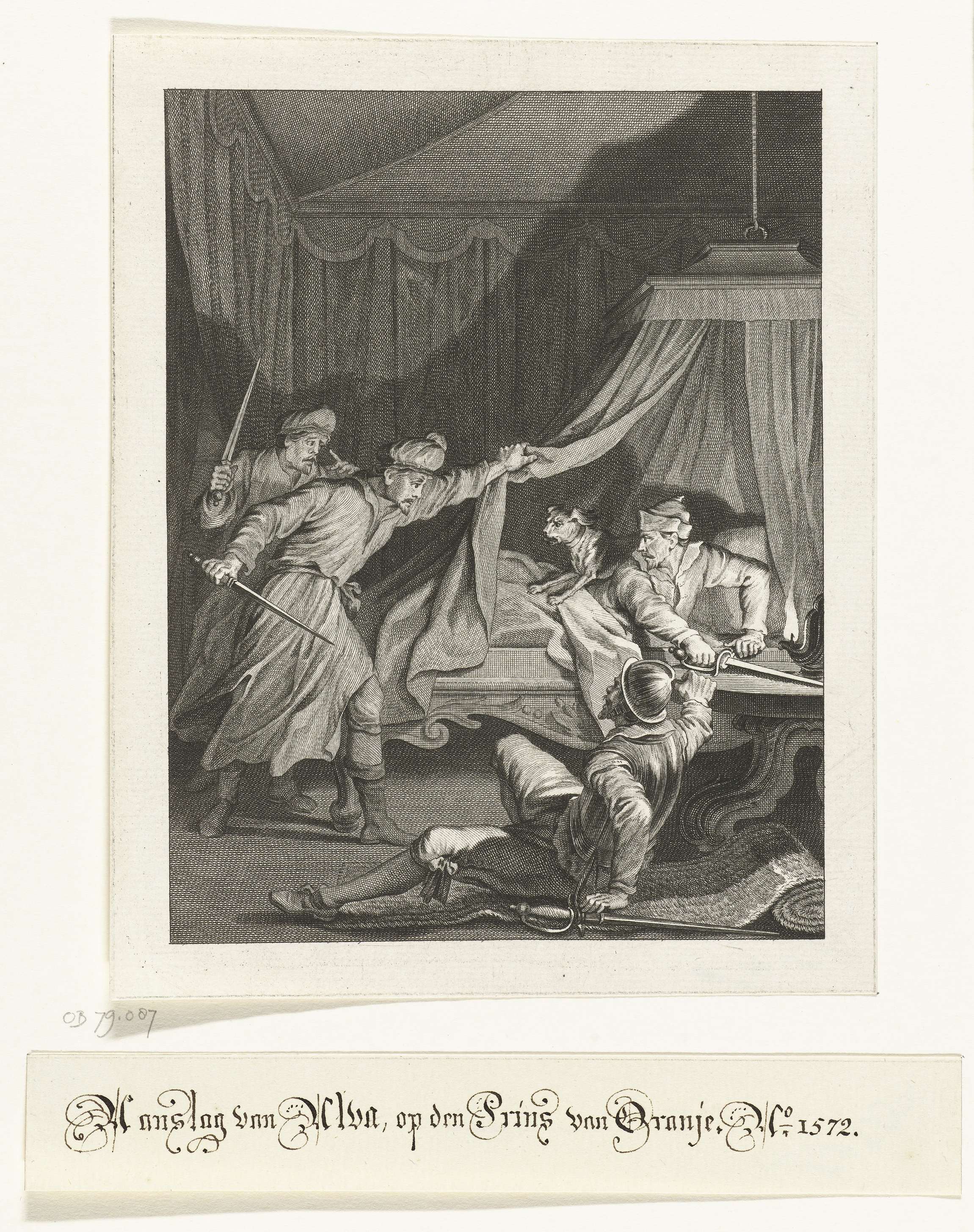 Mislukte aanslag op de prins van Oranje, die slapend in zijn legertent bij Bergen (Henegouwen) wordt gewekt door het geblaf van zijn hond, 11-12 september 1572. Zevende zang.