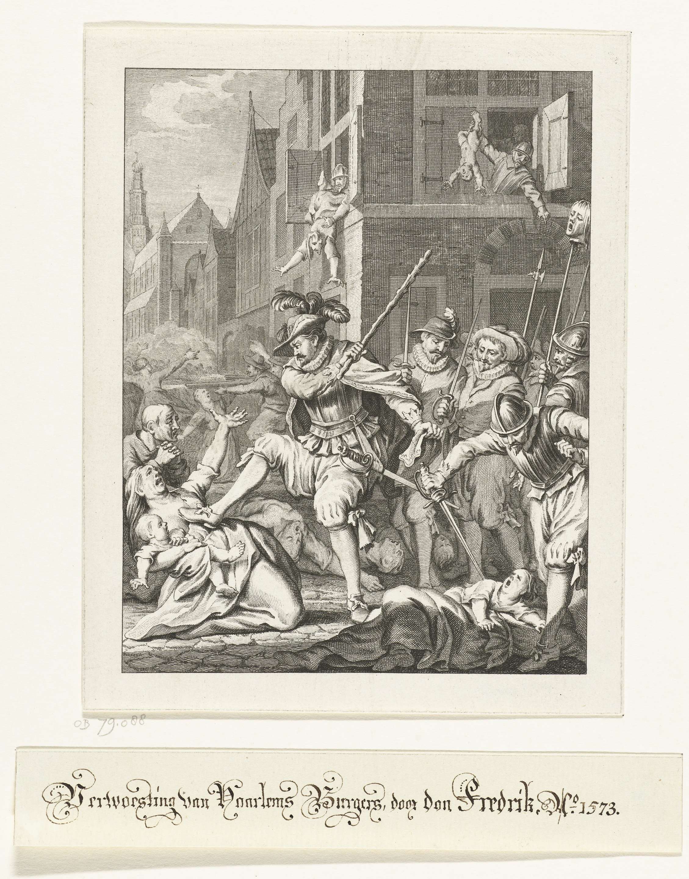 Moordpartij aangericht door Don Frederik en de Spaanse soldaten te Haarlem, 1573. Moeders en kinderen worden vermoord. Achtste zang.